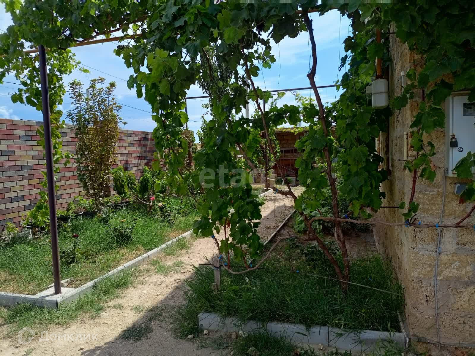 Во дворе предусмотрено место для гаража, где уже сделана яма.Есть место для строительства гостевого дома, также планировалась баня, соответственно выведена в этих местах канализация и вода. Двор ухожен, высажены сортовые виды винограда,уже плодоносящие персик, слива, черешня. Также есть место под огород.Участок угловой, что позволяет сделать заезд с двух сторон.