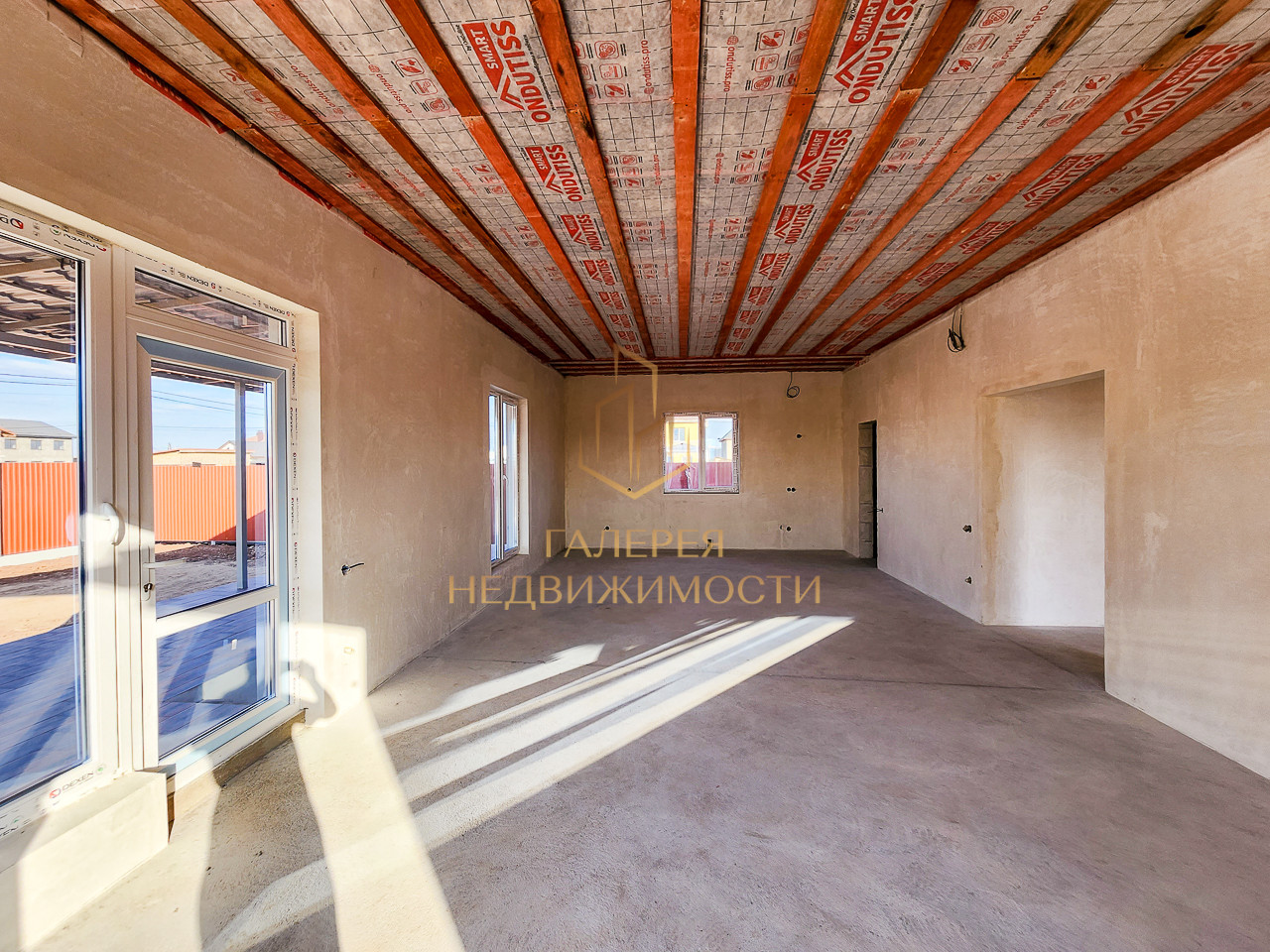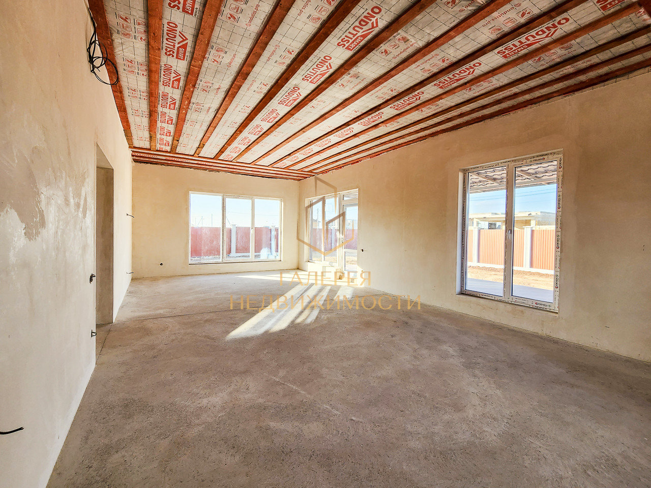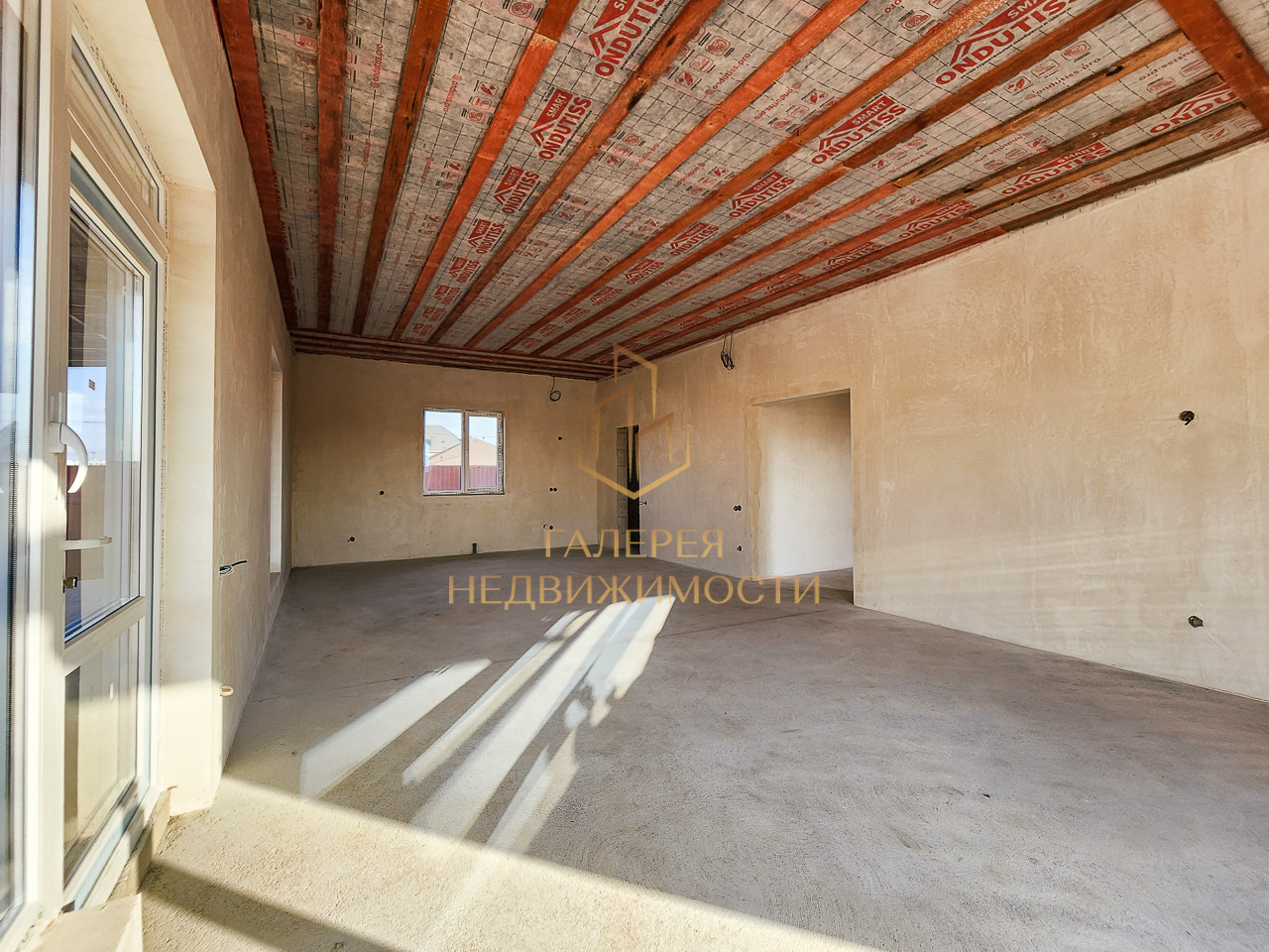 Дом построен из газоблока марки D-500, конструированы железобетонные конструкции из колон и сейсмопояса, что обеспечивает водонепроницаемость, морозостойкость и огнестойкость. Дом полностью утеплен пенопластом 100 мм. Установлены качественные металлопластиковые окна с энергосберегающим эффектом. В доме произведены электромонтажные и сантехнические работы. Перекрытие утеплено минеральной ватой – 150 мм. Стены зашпаклеваны, готовы к финишной отделке, залита черновая стяжка.