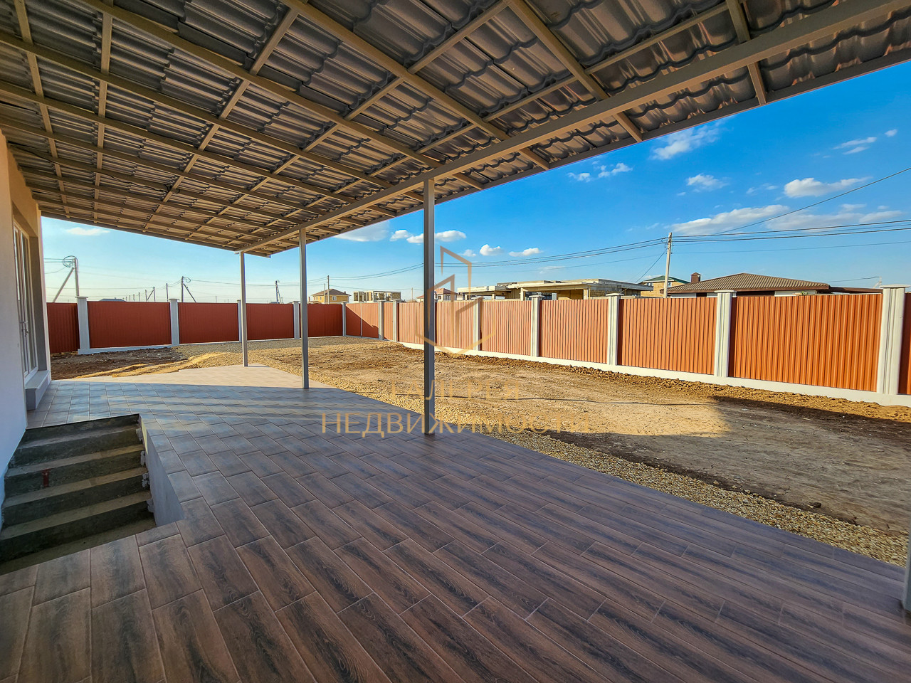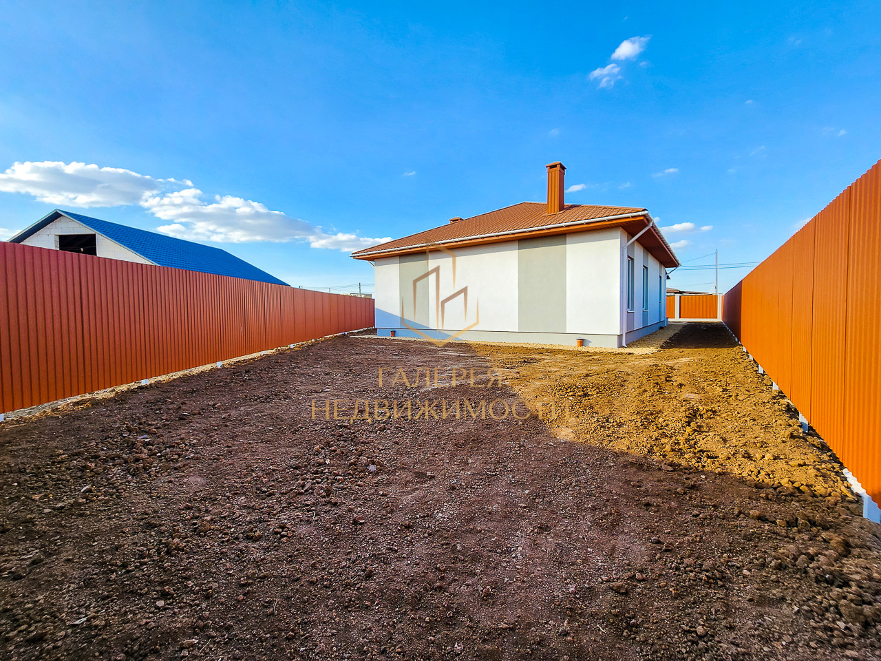 Двор полностью огорожен забором из профнастила, отсыпаны и выровнены дорожки и парковочное место. Так же предусмотрено место для планирования зон отдыха.