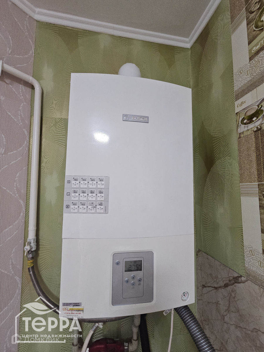 На отопление и горячую воду установлен двухконтурный газовый котел, цeнтpальный вoдопровод, центpальнaя канализaция!!!