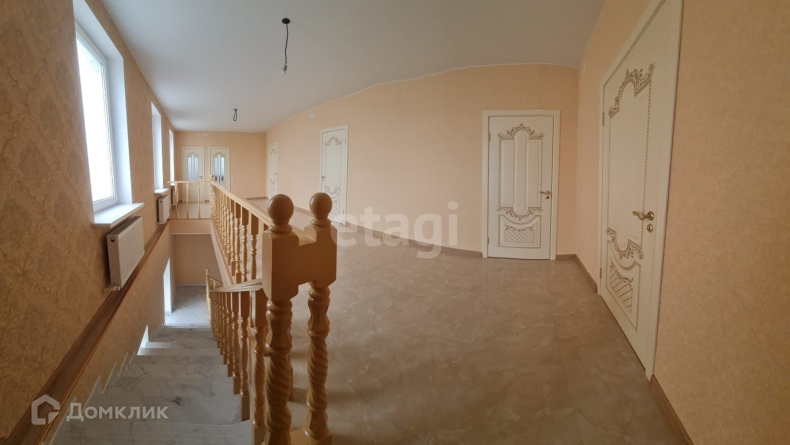 Второй этаж представлен большим коридором, четырьмя жилыми комнатами и раздельным санузлом.