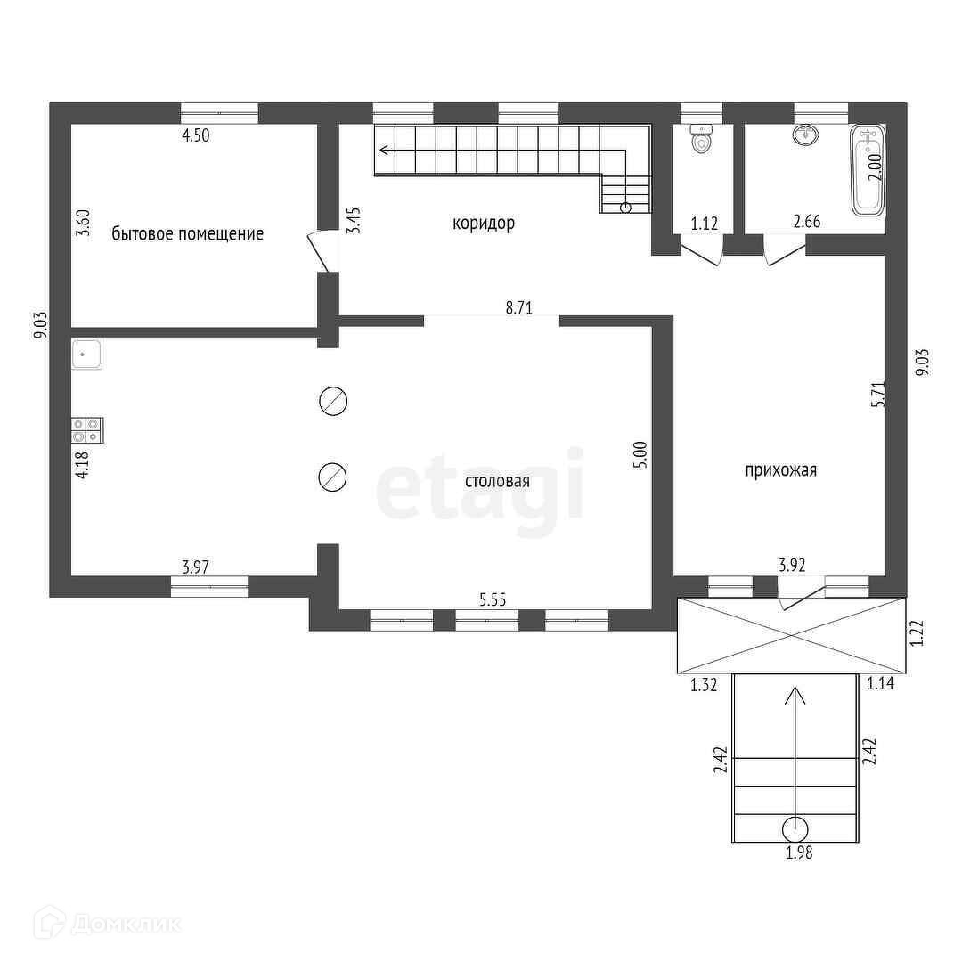 Цокольный этаж предназначен для бани (сауны), для этого имеются все необходимые коммуникации.
