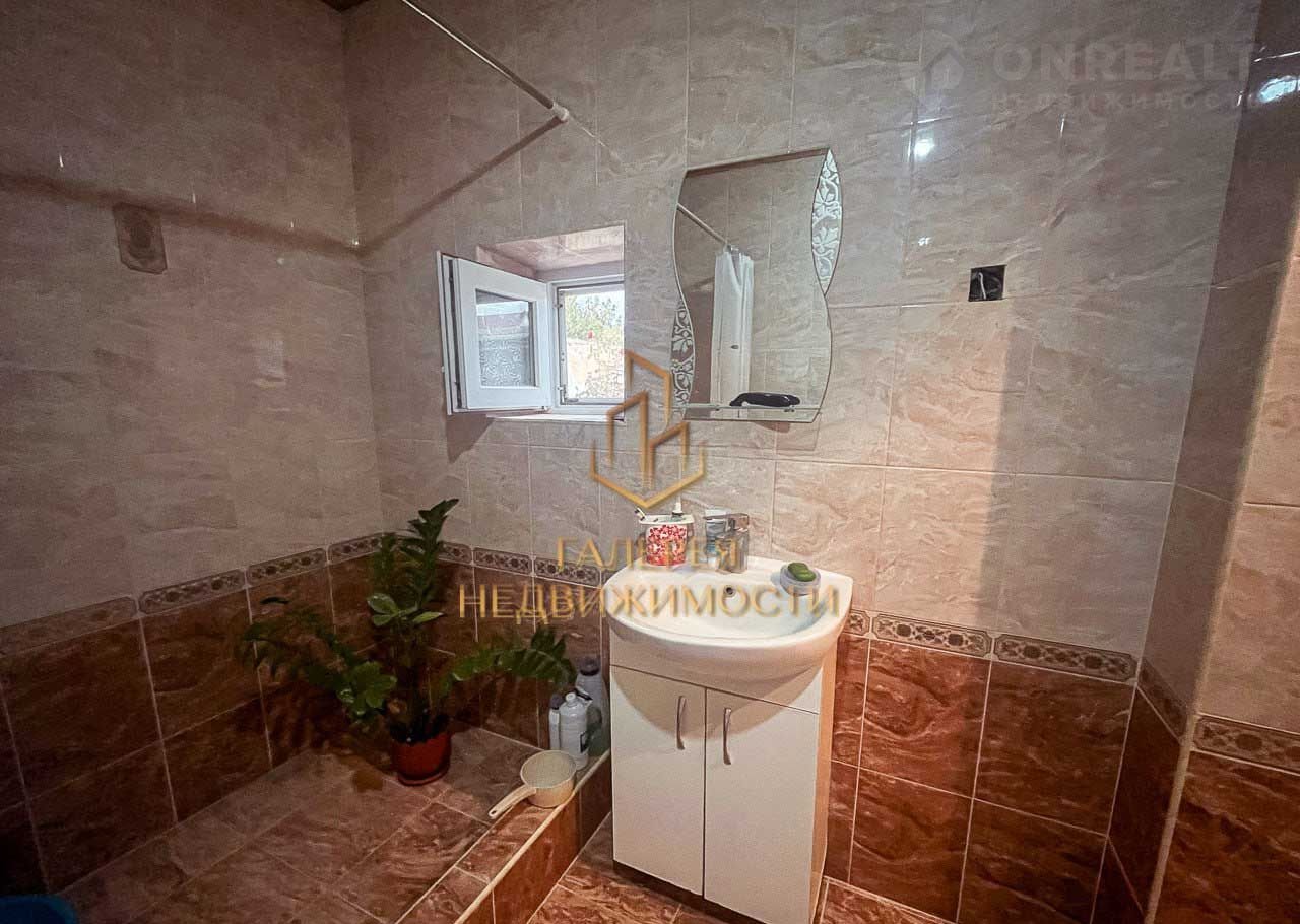 Улица асфальтированная с широкими тротуарами с обоих сторон и новым освещением. Дом стоит на армированном ленточном фундаменте, построен из камня ракушечник, крыша шифер, фасад утеплен. Также установлены металлопластиковые окна.