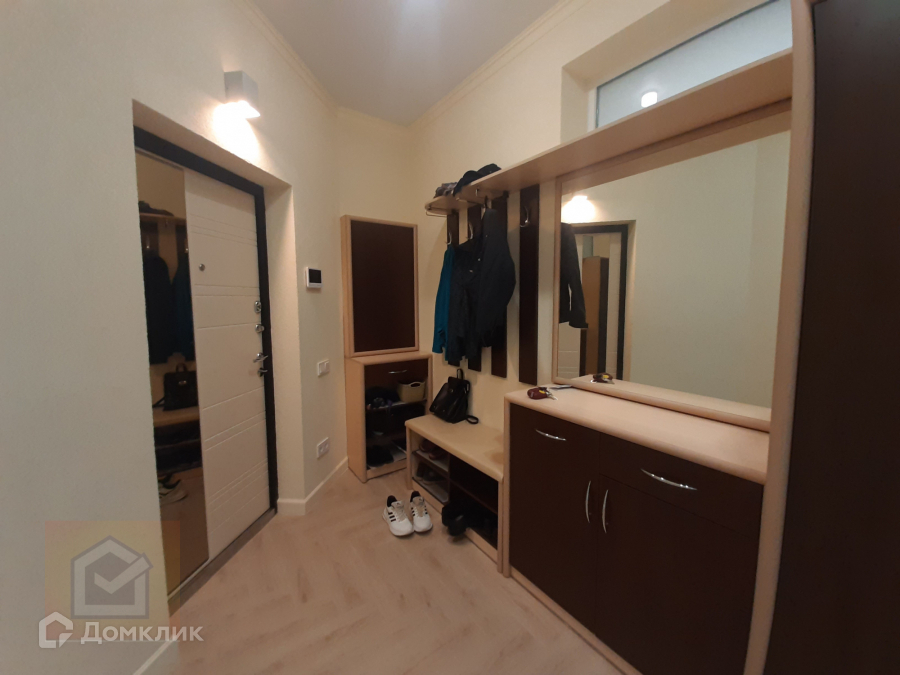 В коридоре и спальной комнате установлены встроенные шкафы-купе.