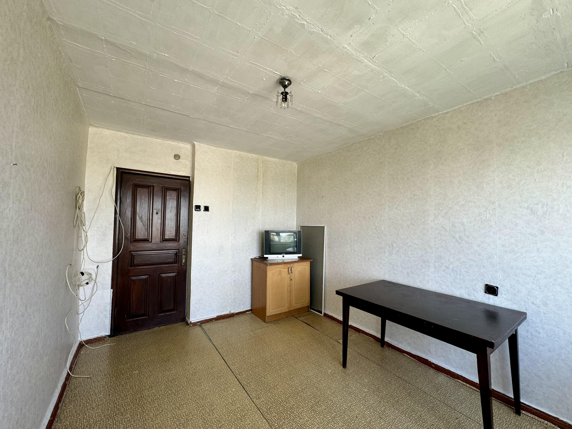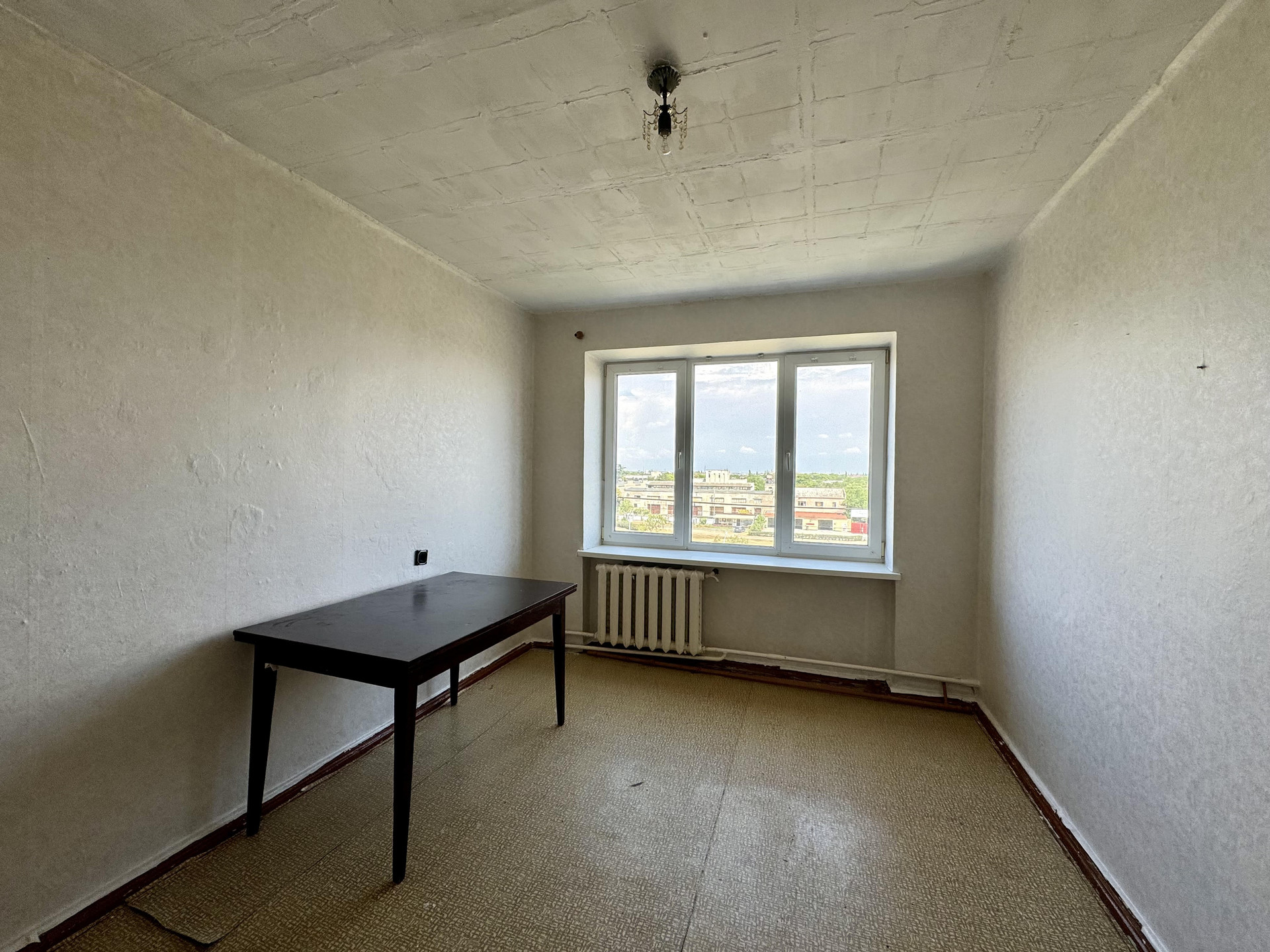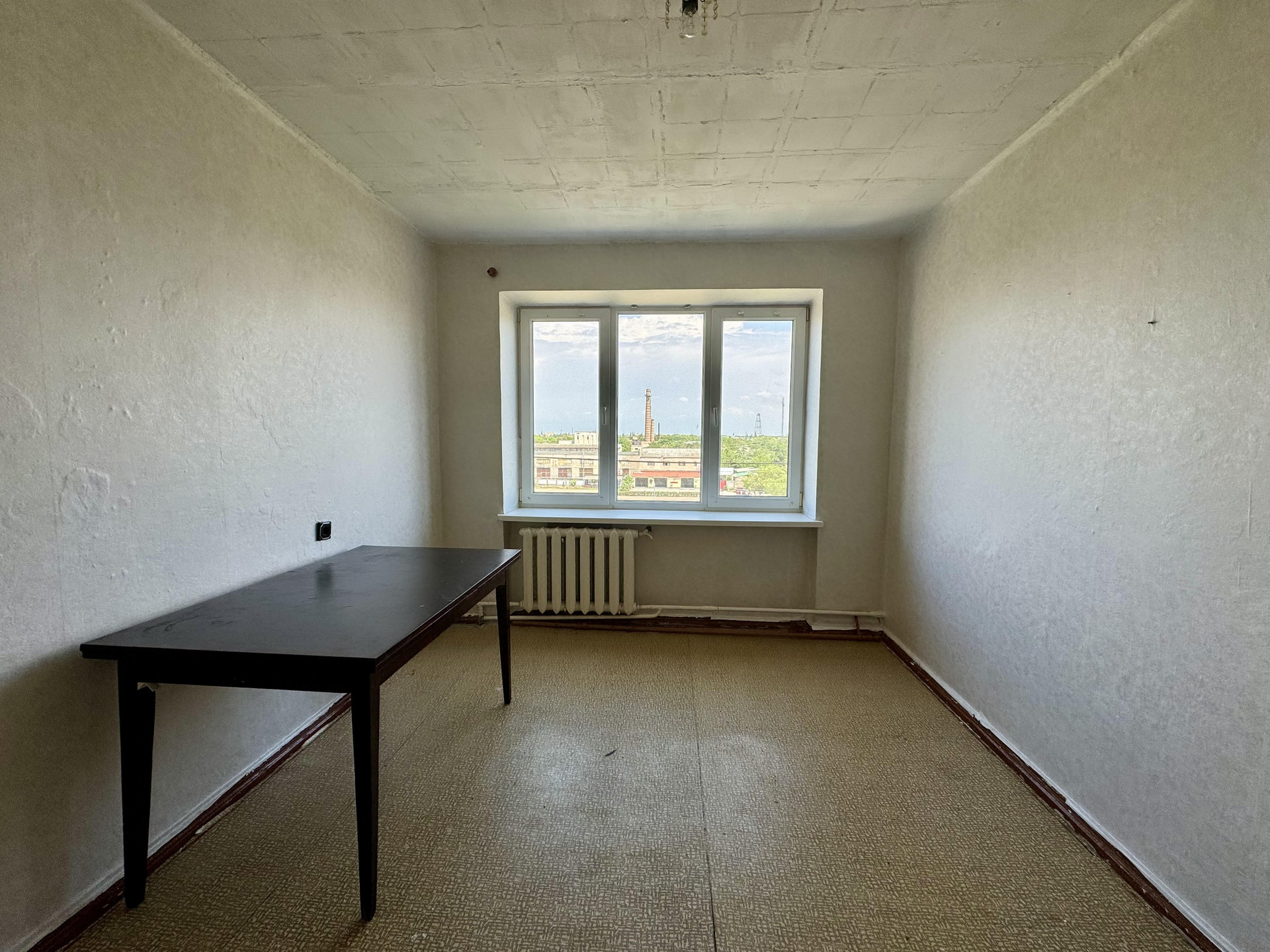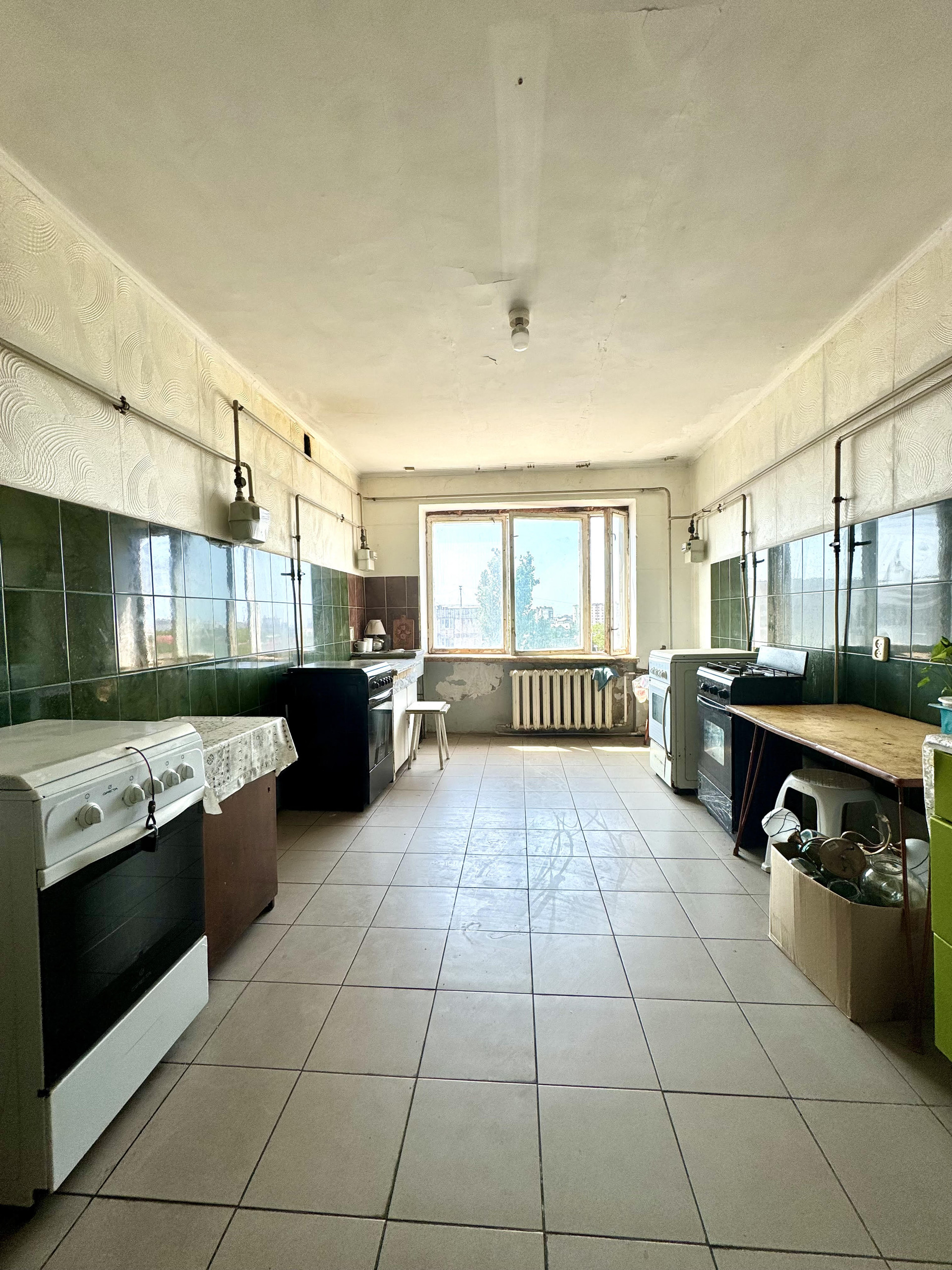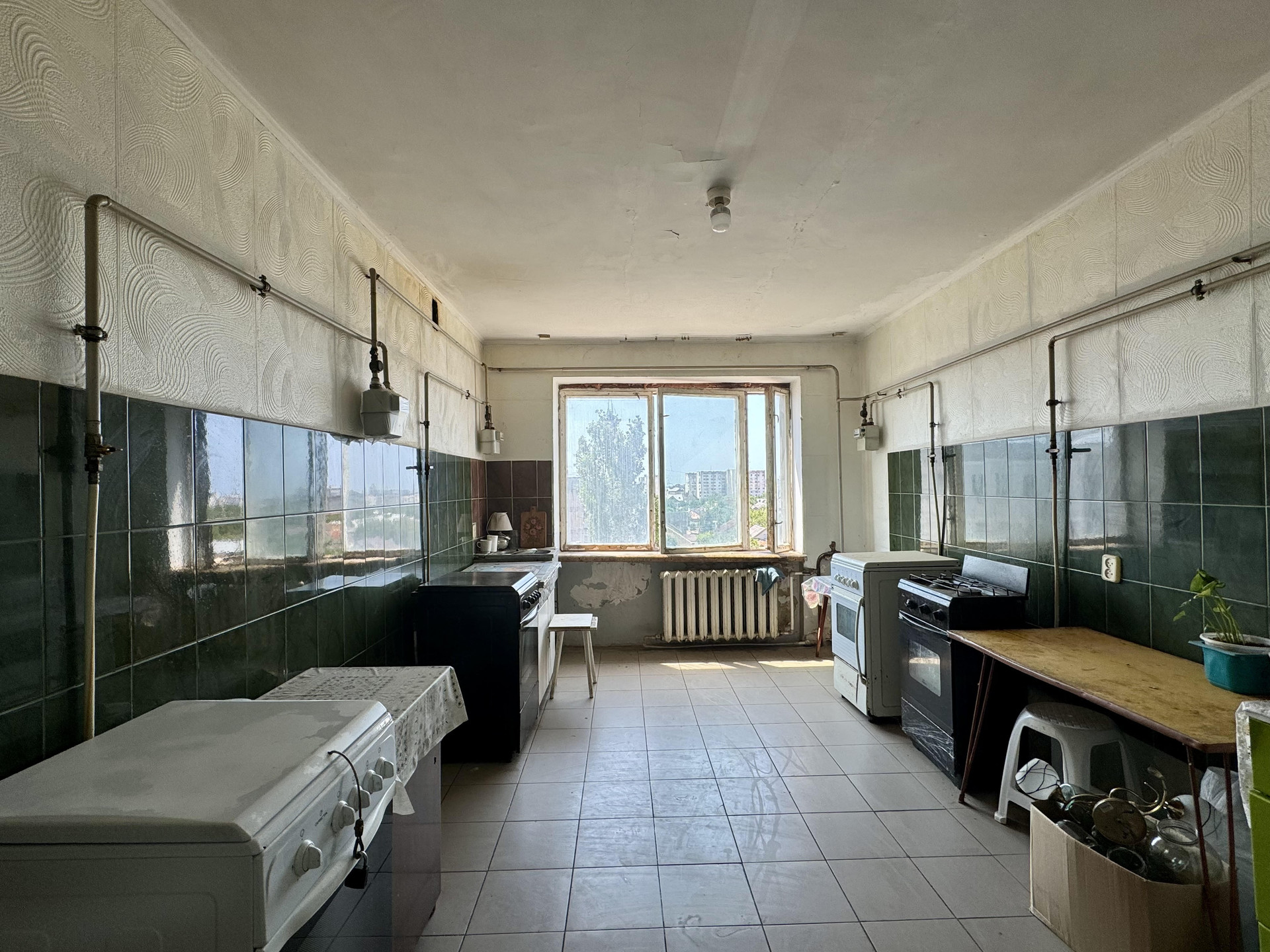 Окно в комнате металлопластиковое.  Просторная кухня общая на 5 комнат, фактически пользуются только 3 комнаты. Данная комната имеет свою 4-х конфорочную плиту и рабочее место возле окна.  Соседи и по тамбуру, и по этажу – спокойные и дружелюбные люди.