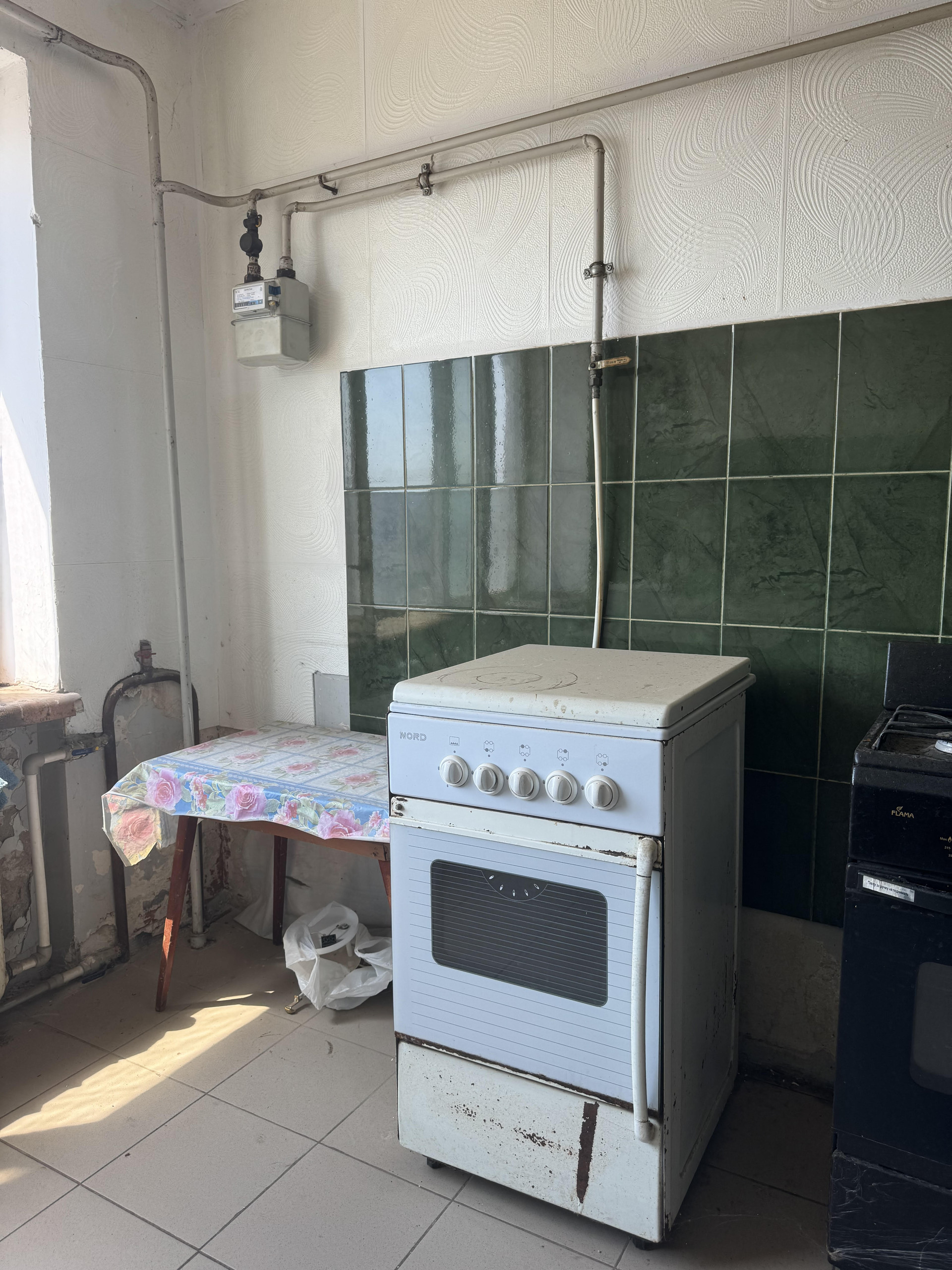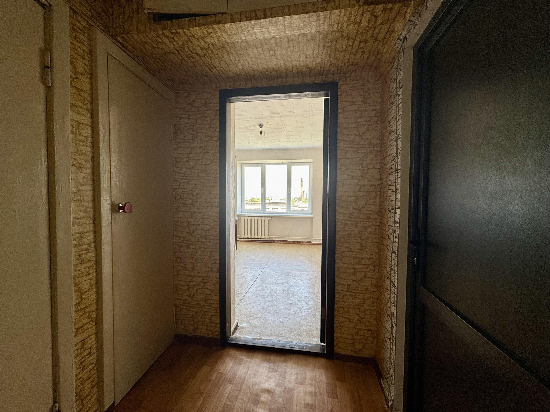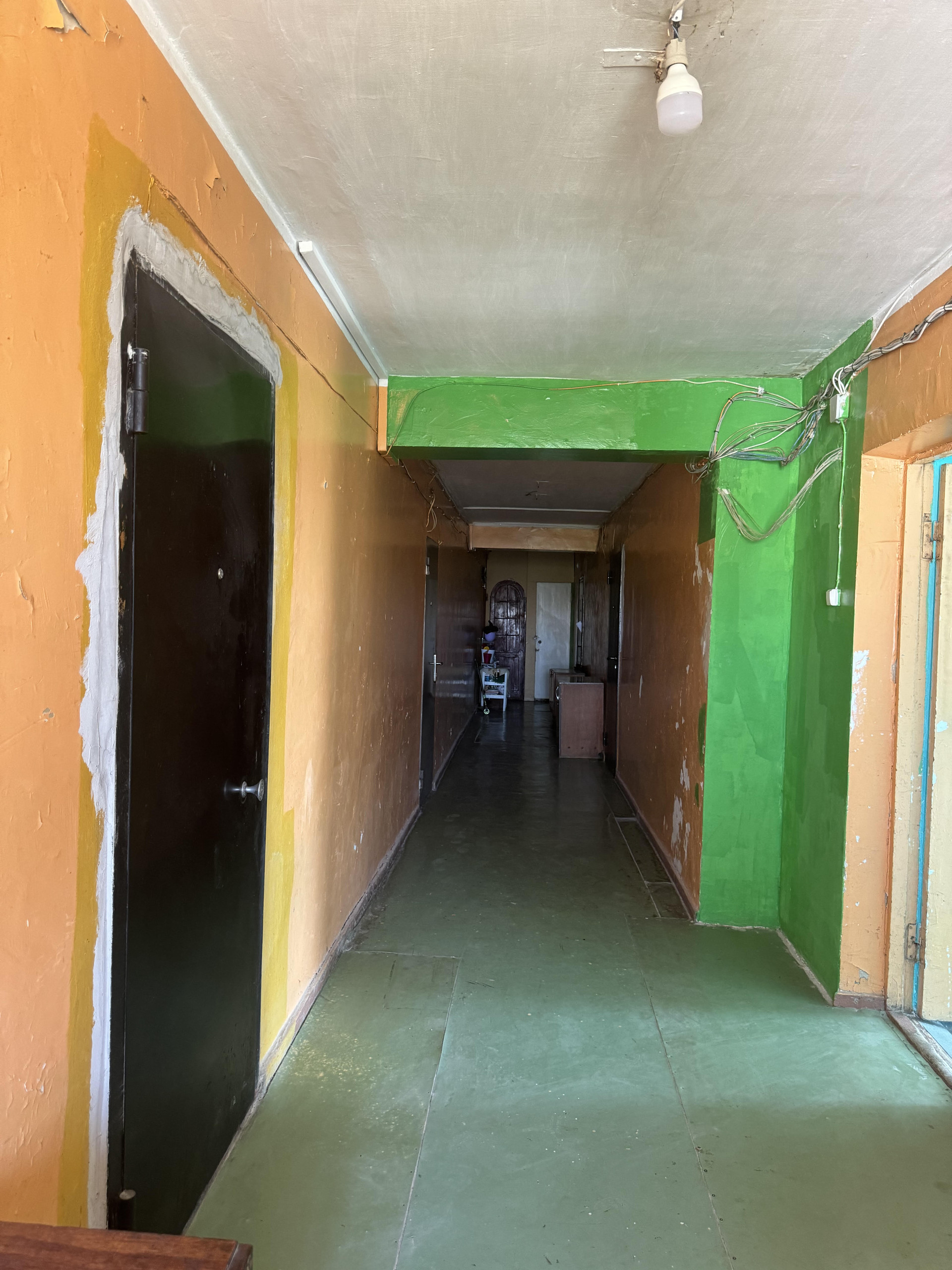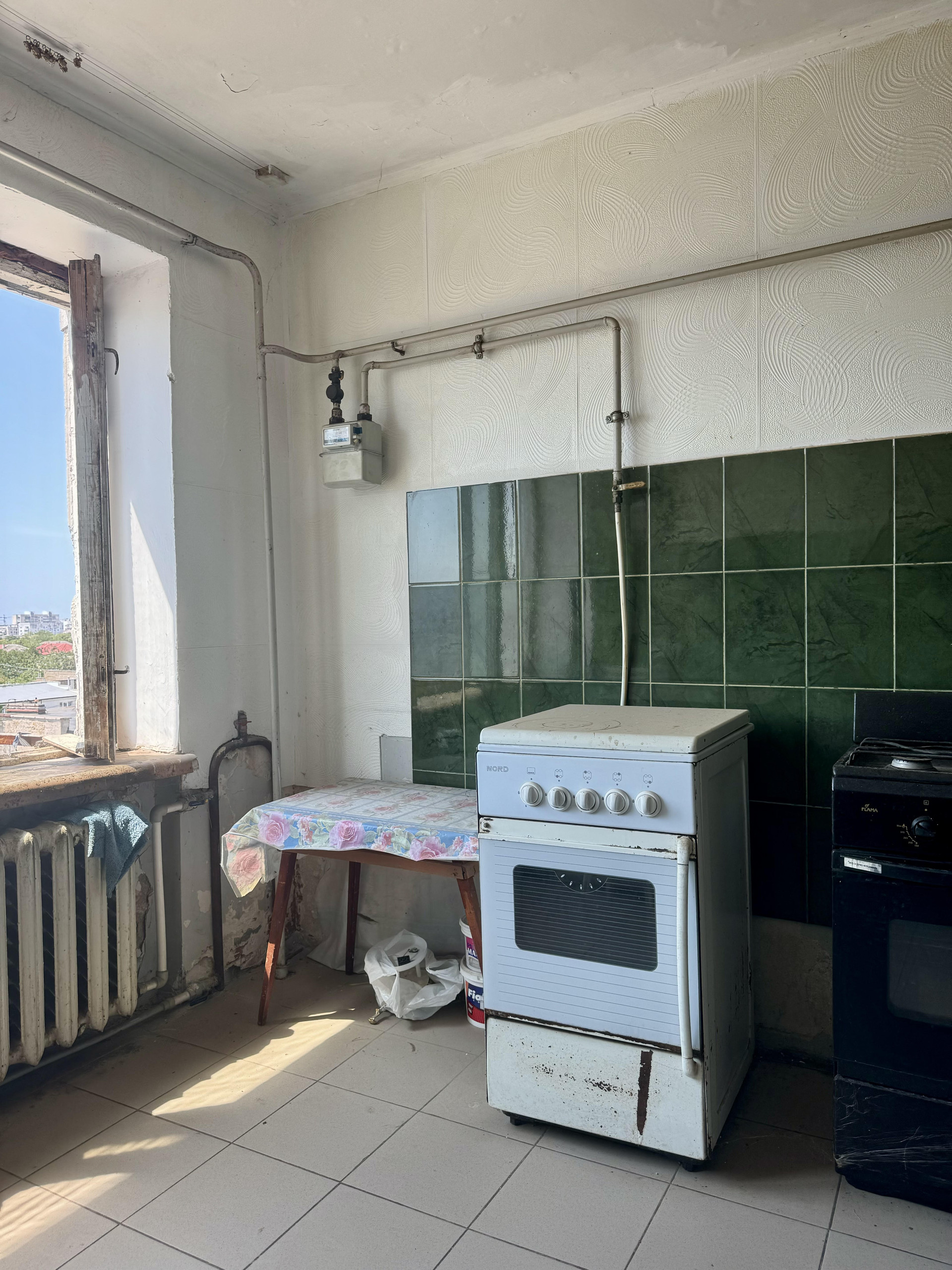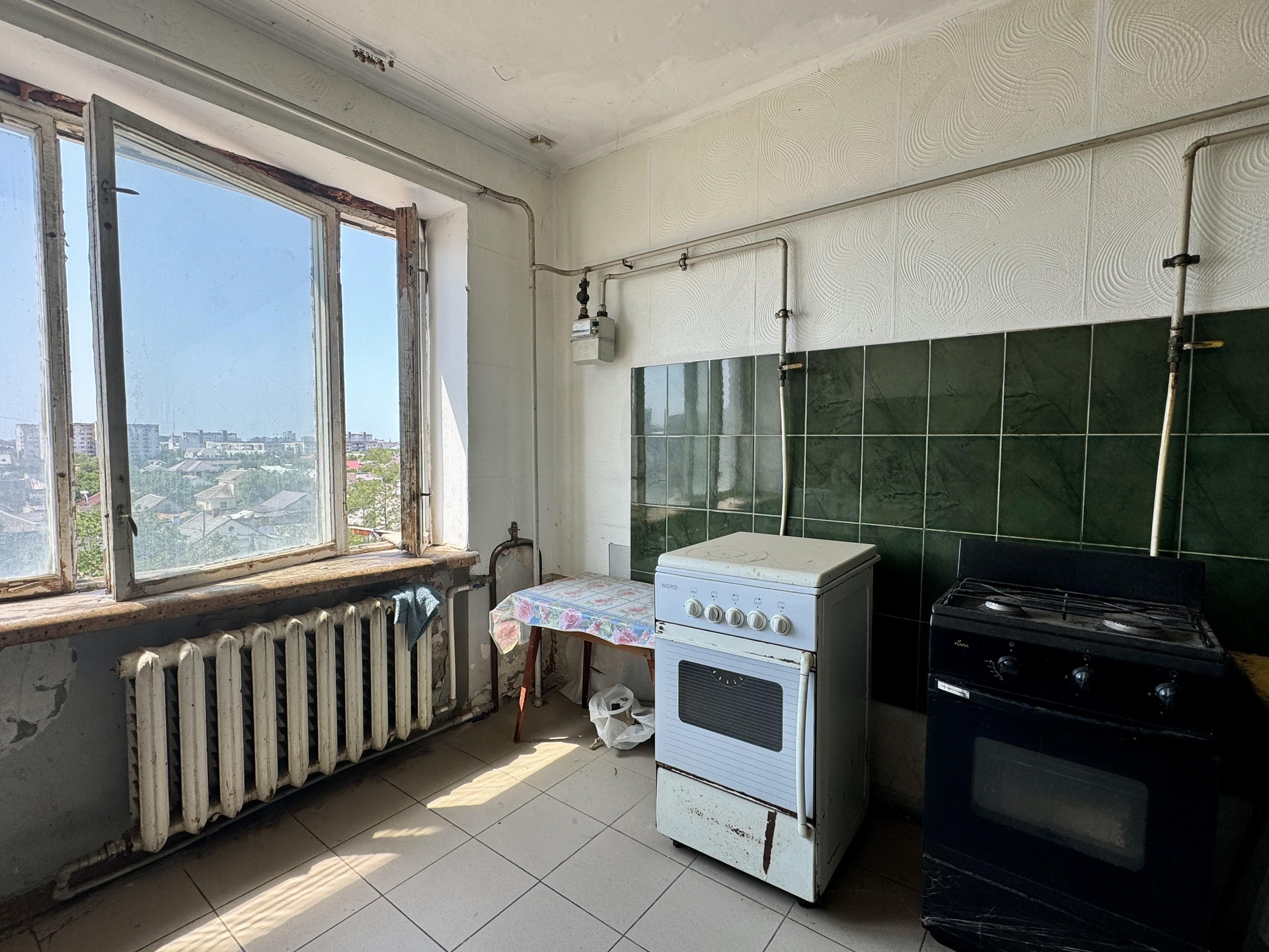 Окно в комнате металлопластиковое.  Просторная кухня общая на 5 комнат, фактически пользуются только 3 комнаты. Данная комната имеет свою 4-х конфорочную плиту и рабочее место возле окна.  Соседи и по тамбуру, и по этажу – спокойные и дружелюбные люди.