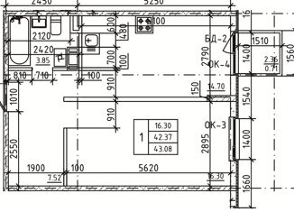 1-ком. квартира на продажу, 42.7 м2, улица 60 лет ВЛКСМ, 31к2
