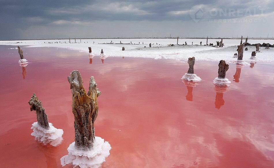 Рядом с Евпаторией находится знаменитое соленое озеро Сасык-Сиваш, которое в летнее время окрашивается розовым цветом
