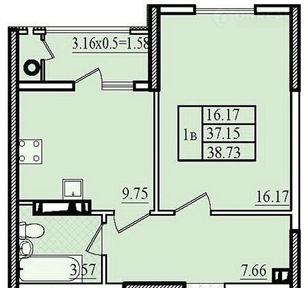 Жилая площадь 16.2 м2