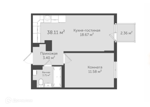 Общая площадь 38.1 м2