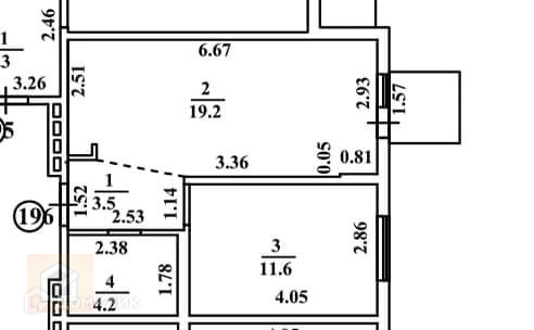 ✔Квартира однокомнатная, общая площадь 38,5 квадратных метров. По факту евродвушка - большая кухня-столовая (19,2 м2) и спальня (11,6 м2).