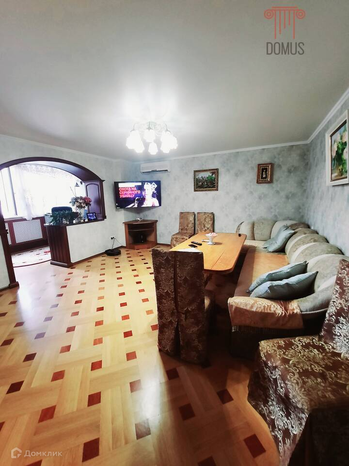 В прекрасном районе города Евпатории, продаётся шикарная квартира для большой семьи. Дом 1995г постройки, одноподъездный, высокий цоколь, лифт, на этаже две квартиры, своё автономное отопление ( существенно сэкономит Ваш бюджет). В квартире 5 комнат, просторная гостиная, кухня с дорогой мебелью и бытовой техникой. барная стойка, 4 отапливаемые лоджии, гардеробная, кабинет, прачечная с накопительной ёмкостью для воды, два санузла. На полу паркетная доска, в квартире хороший ремонт, окна пластиковые, в каждой комнате кондиционер, дорогая и качественная мебель. Двор ухоженный (зелёный), детские и спортивные площадки, есть своя придомовая территория с фруктовыми деревьями, качелей, зоной барбекю. Рядом детский сады, общеобразовательные школы, два самых больших рынка, салоны красоты, стоматология, фитнес зал . Отличная транспортная развязка, до моря 10 мин на транспорте. Документы РФ. Обратите внимание, отличное предложение!