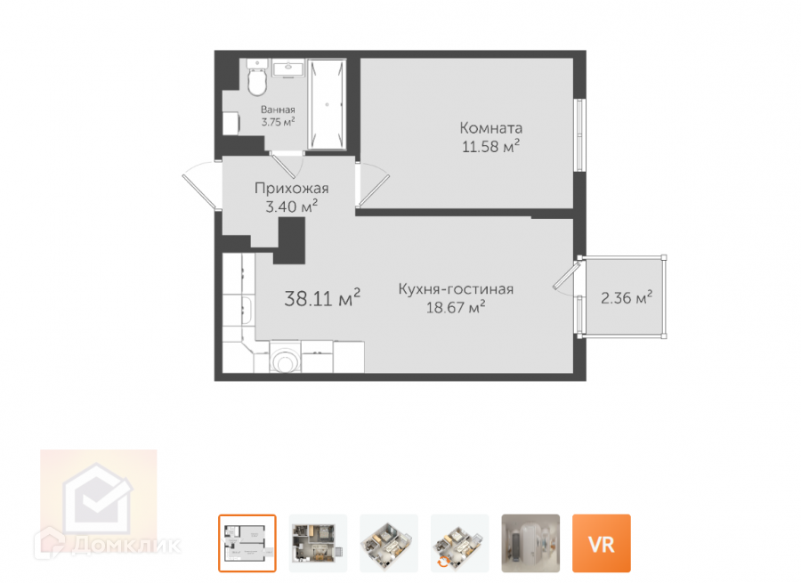 Общая площадь 38.1 м2