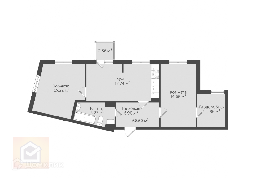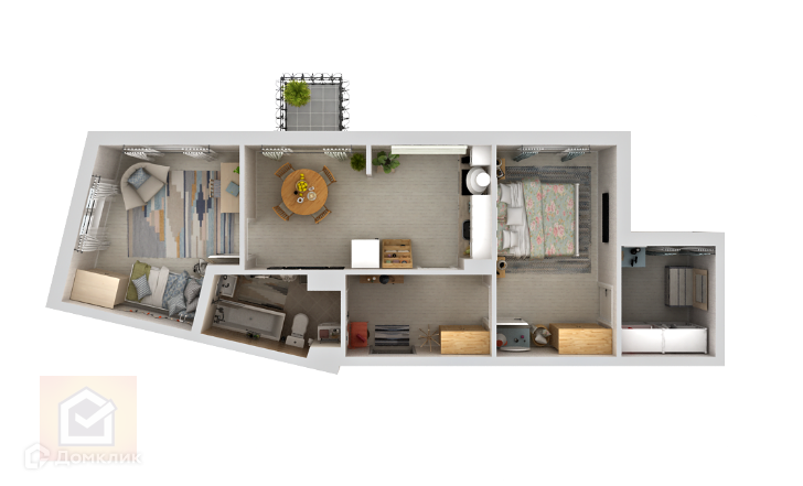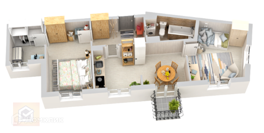 Комнаты разделены друг от друга прихожей и кухней.