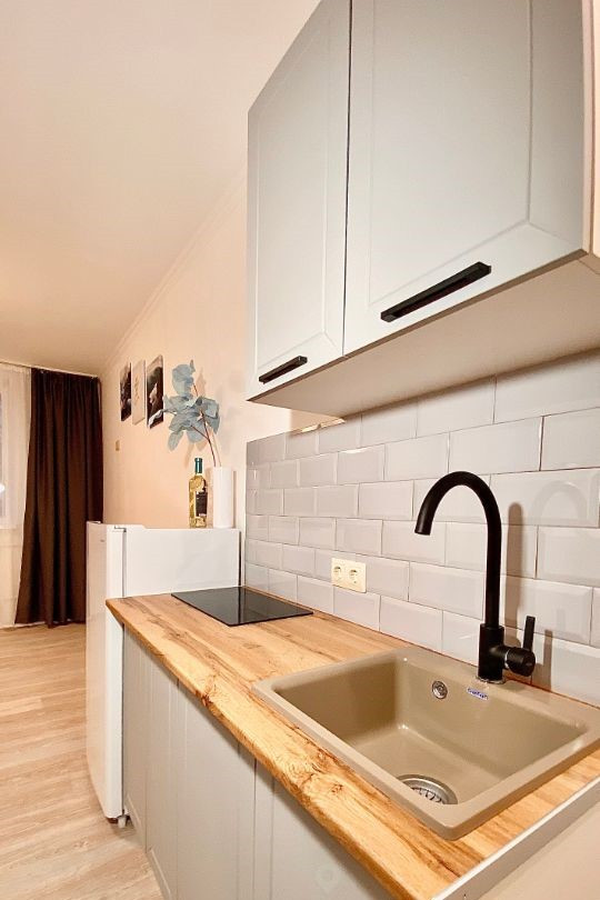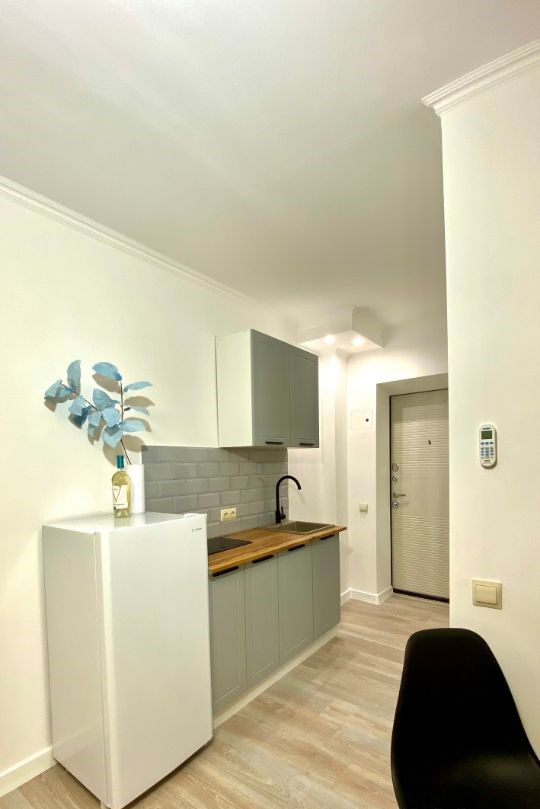 Продается уютная 1 - комнатная квартира – студия, в тихом спальном районе. Общая площадь 18 кв.м., на 1/5 этажного дома. Полноценная квартира со всеми центральными городскими коммуникациями (котлов, бойлеров в квартире нет). Просторный санузел с местом для стиральной машины. В квартире только что закончен качественный капитальный ремонт с заменой всех коммуникаций. Так же квартира укомплектована новой мебелью, бытовой техникой и всем необходимым для комфортного проживания (все остаётся с квартирой). Качественная входная металлическая дверь. Не большие коммунальные платежи. При доме круглосуточный продовольственный магазин, в 200 метрах более крупный, автобусная остановка в 200 метрах, все в пешей доступности. В договоре купли - продажи полная стоимость. Перепланировок нет. Долгов нет. Культурные соседи, окна в уютный двор с парковкой. В собственности более трёх лет, никто не прописан, один взрослый собственник. Документы РФ.