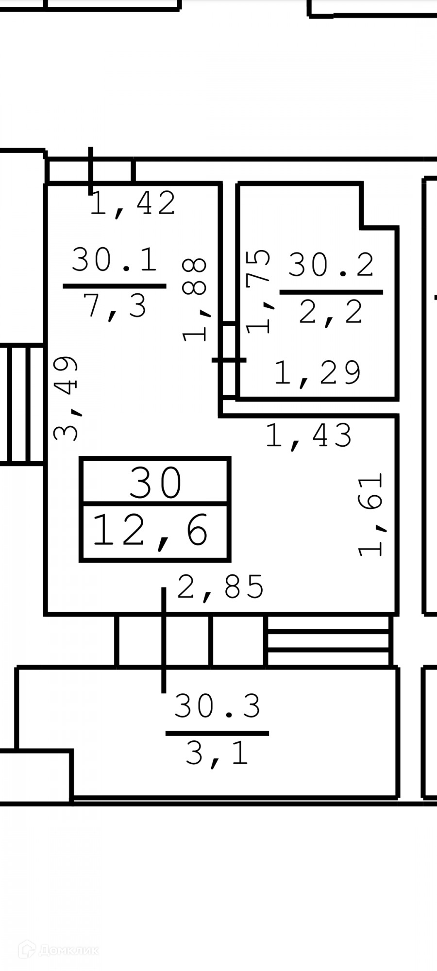 Общая площадь 12.6 м2