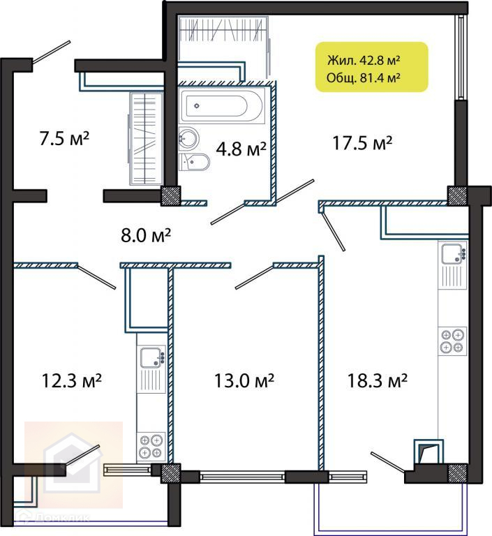 Общая площадь 81.4 м2