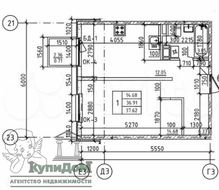 Общая площадь 37.6 м2