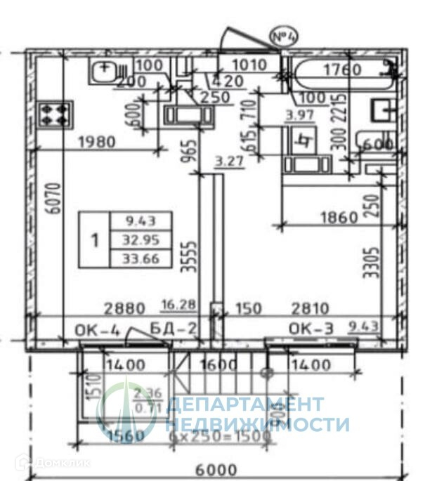 Общая площадь 34 м2