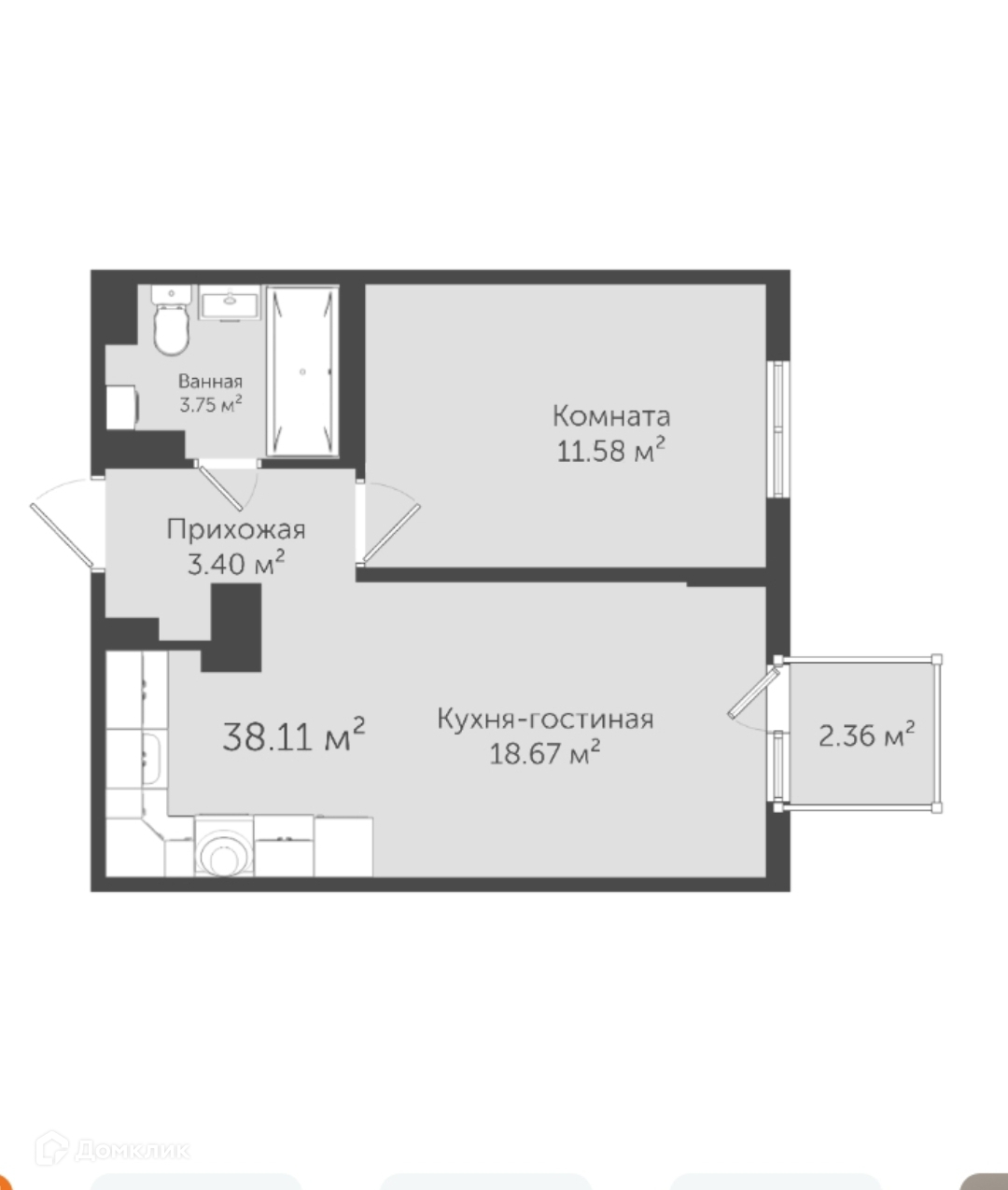 Общая площадь 38.1 м2