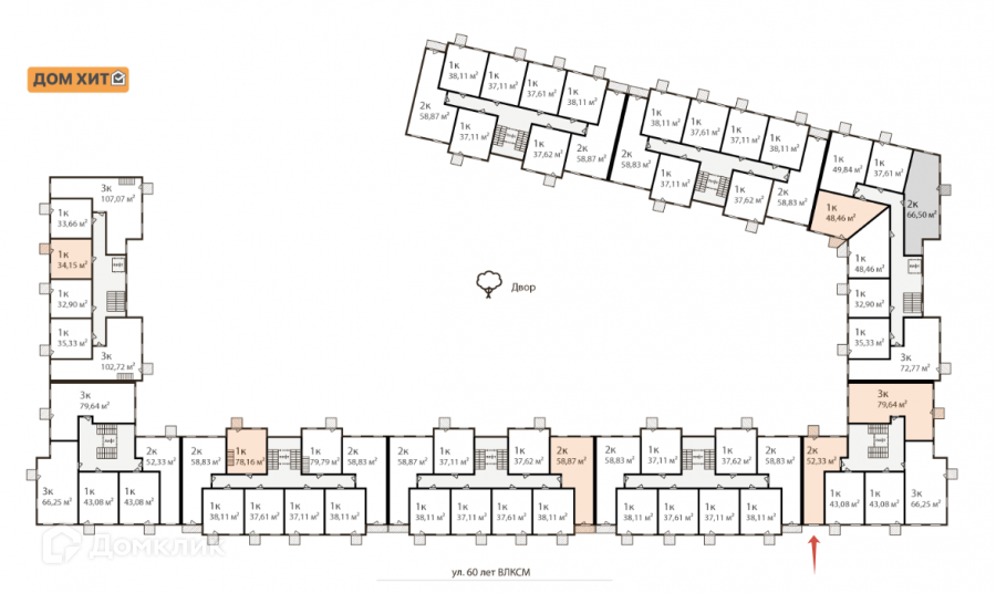 Подъезды выходят на две стороны, один во двор дома с новыми детскими площадками, второй на прекрасную площадь с фонтаном и башенными часами!