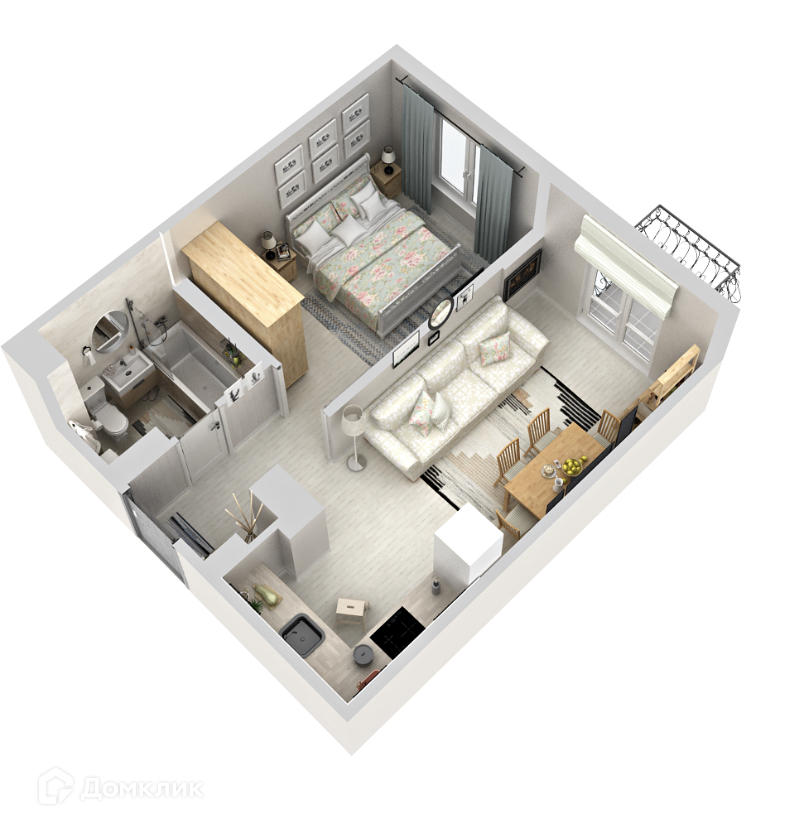 Современная классическая планировка квартиры удовлетворит любой вкус: отдельная спальня и просторная кухня-гостиная с балконом создадут прекрасный уют и комфорт для вашей счастливой жизни.
