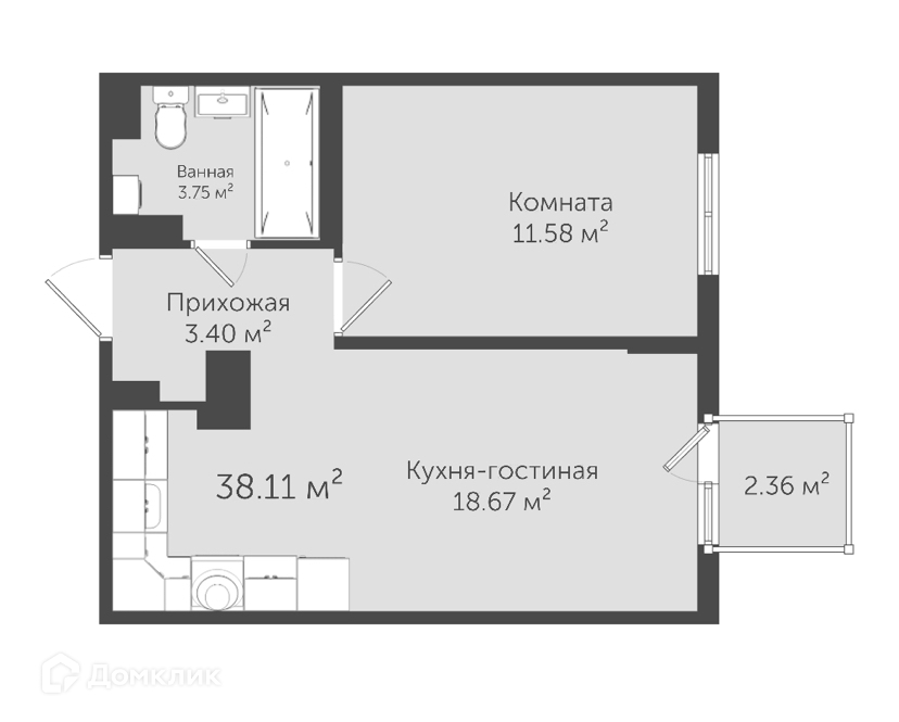 Общая площадь 38.1 м2