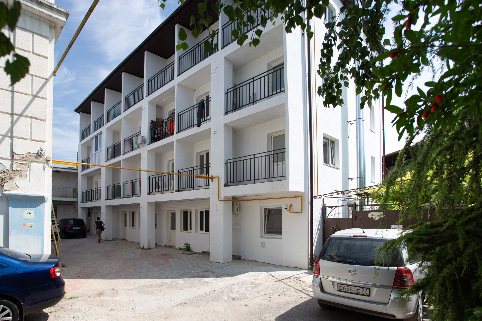 Рядом со зданием есть большая наземная парковочная площадка, также есть место для автомобиля во дворе.
