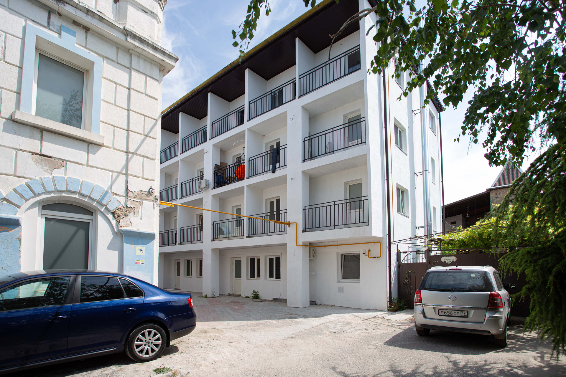 Рядом со зданием есть большая наземная парковочная площадка, также есть место для автомобиля во дворе.