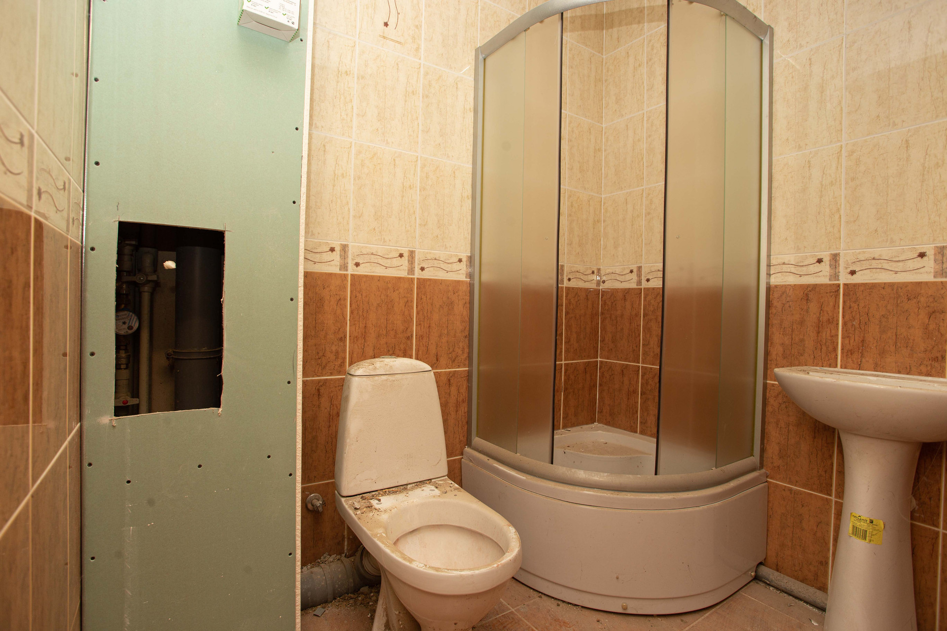 Помещение продается в предчистовой отделке. Произведена разводка электричества с автоматами (счетчики “день-ночь”), установлены трубы водоотведения, и радиаторы отопления, на полу плитка.