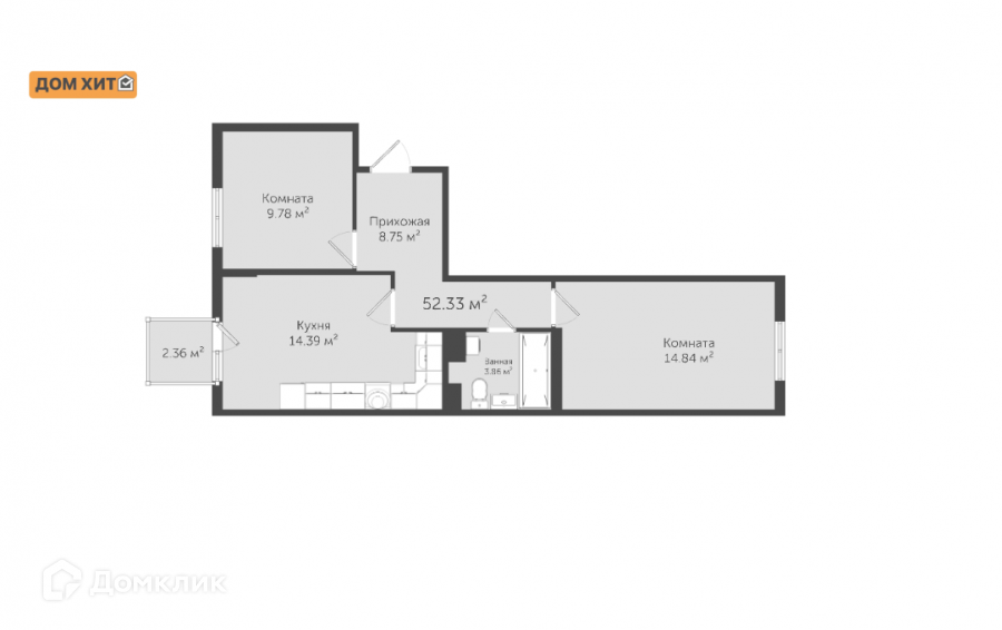 Общая площадь 52.33 м2