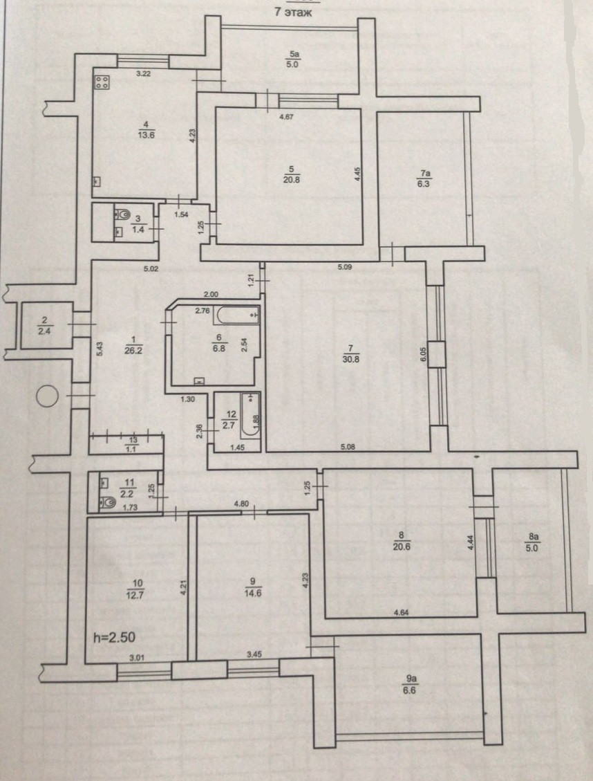 комната 1: 30,8 кв.м