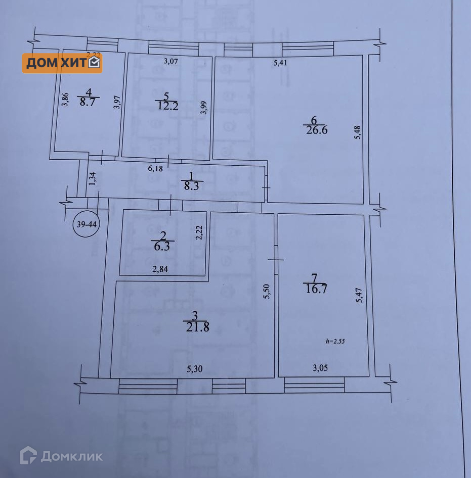 Жилая площадь 66.2 м2