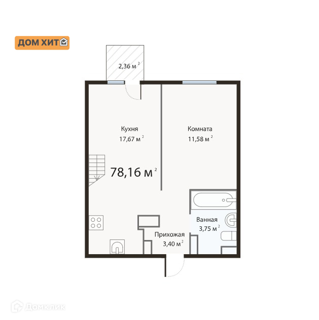 Общая площадь 78.2 м2