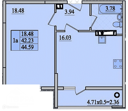 Общая площадь 61.63 м2