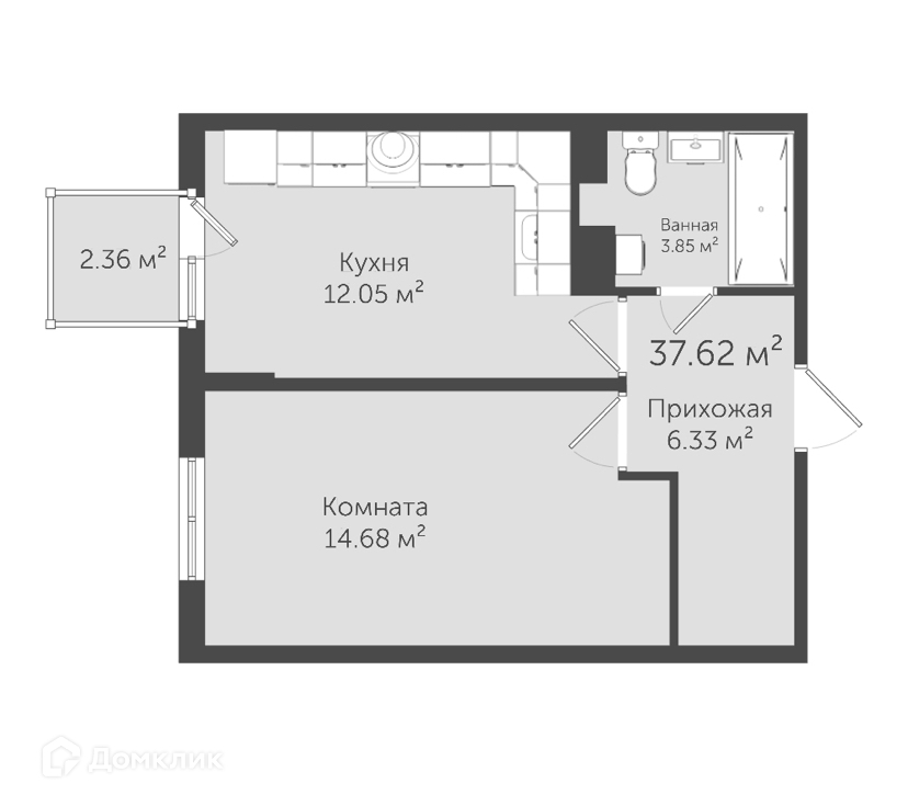 Современная классическая планировка квартиры удовлетворит любой вкус: отдельная спальня и просторная кухня-гостиная с балконом создадут прекрасный уют и комфорт для вашей счастливой жизни.
