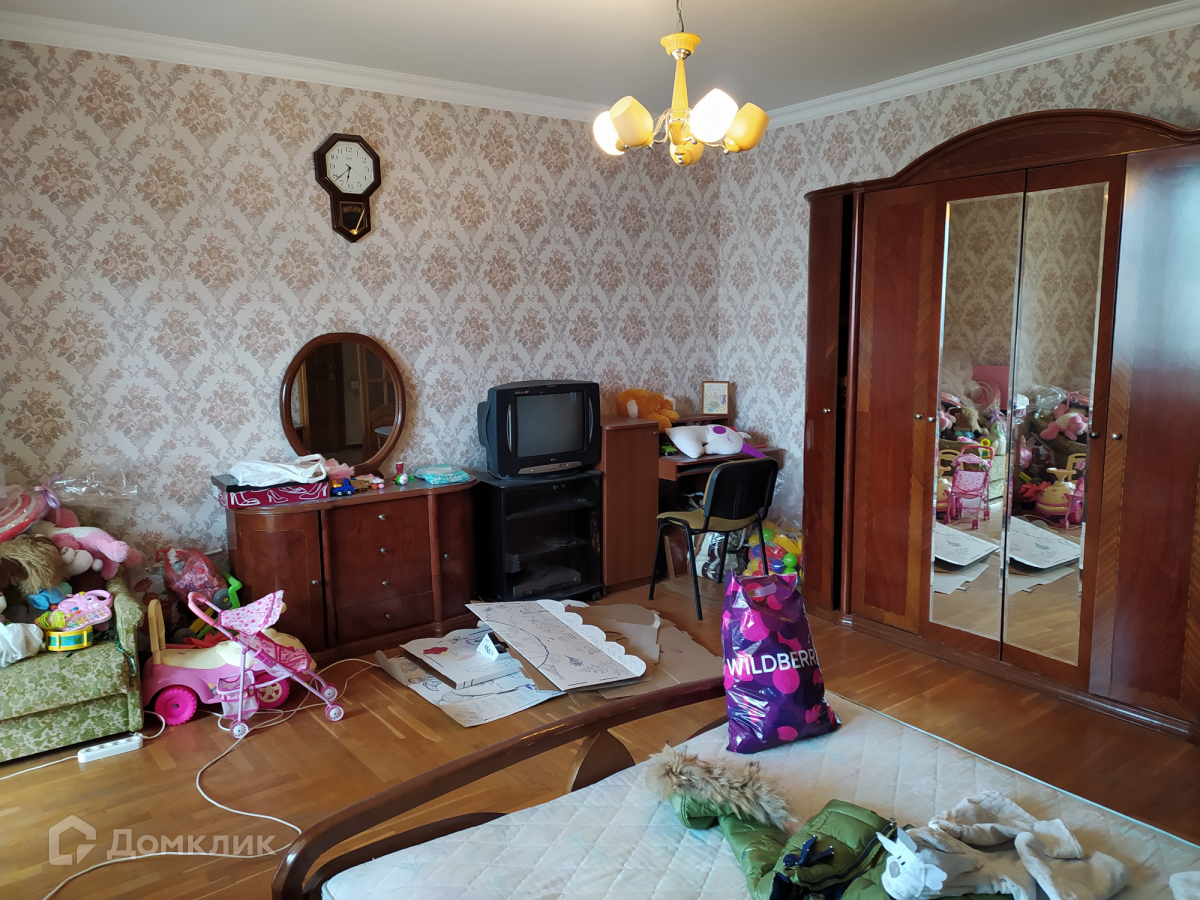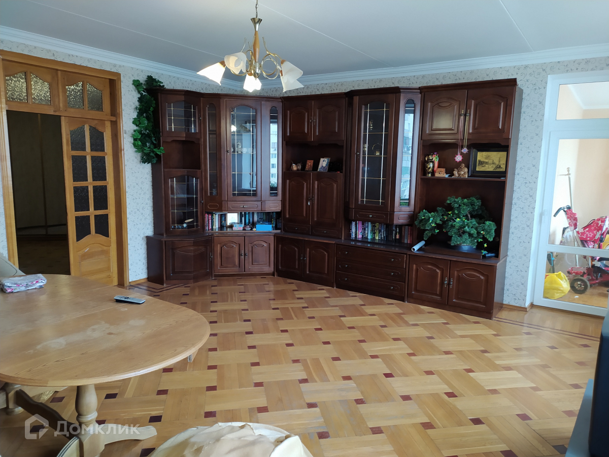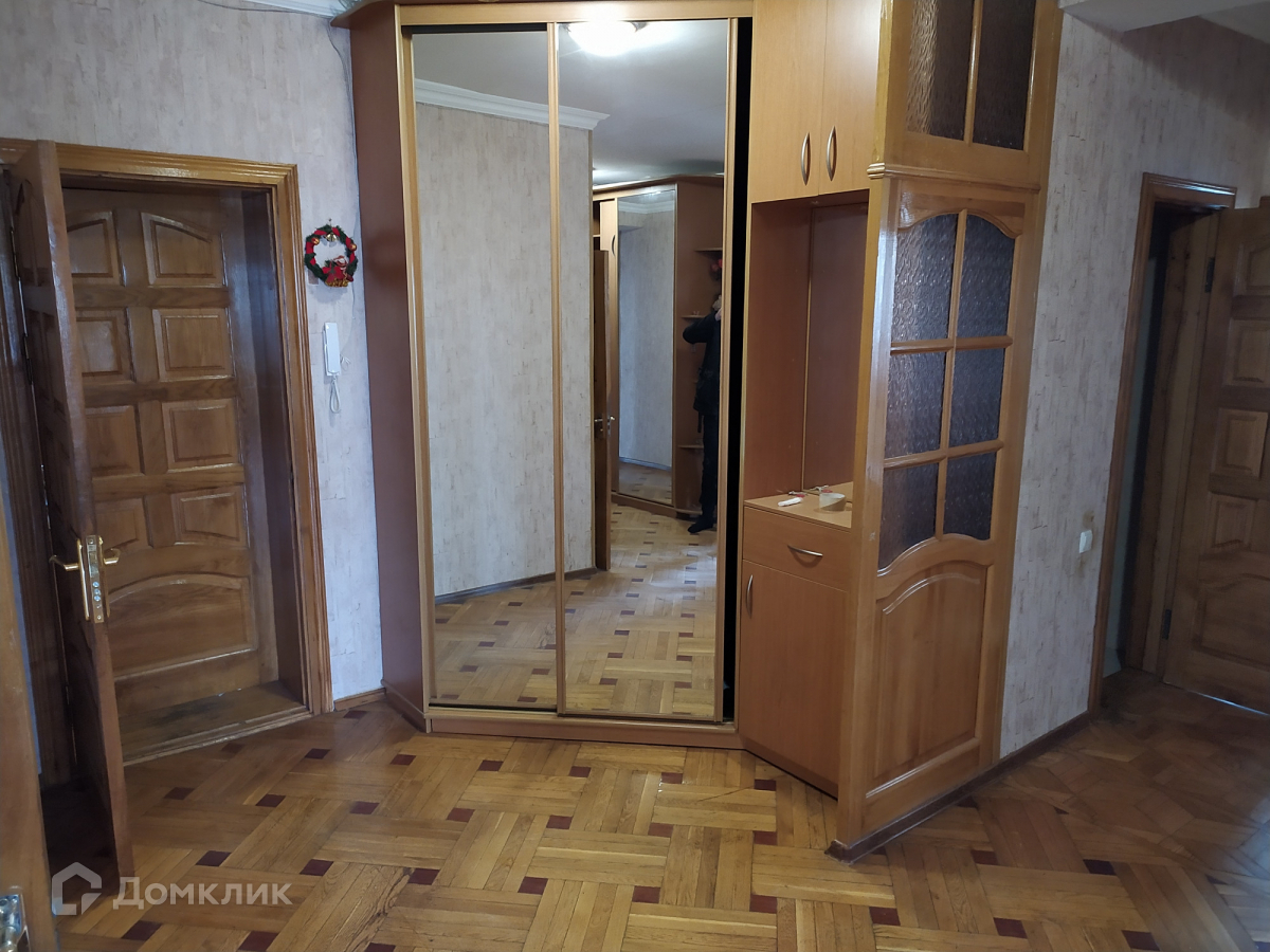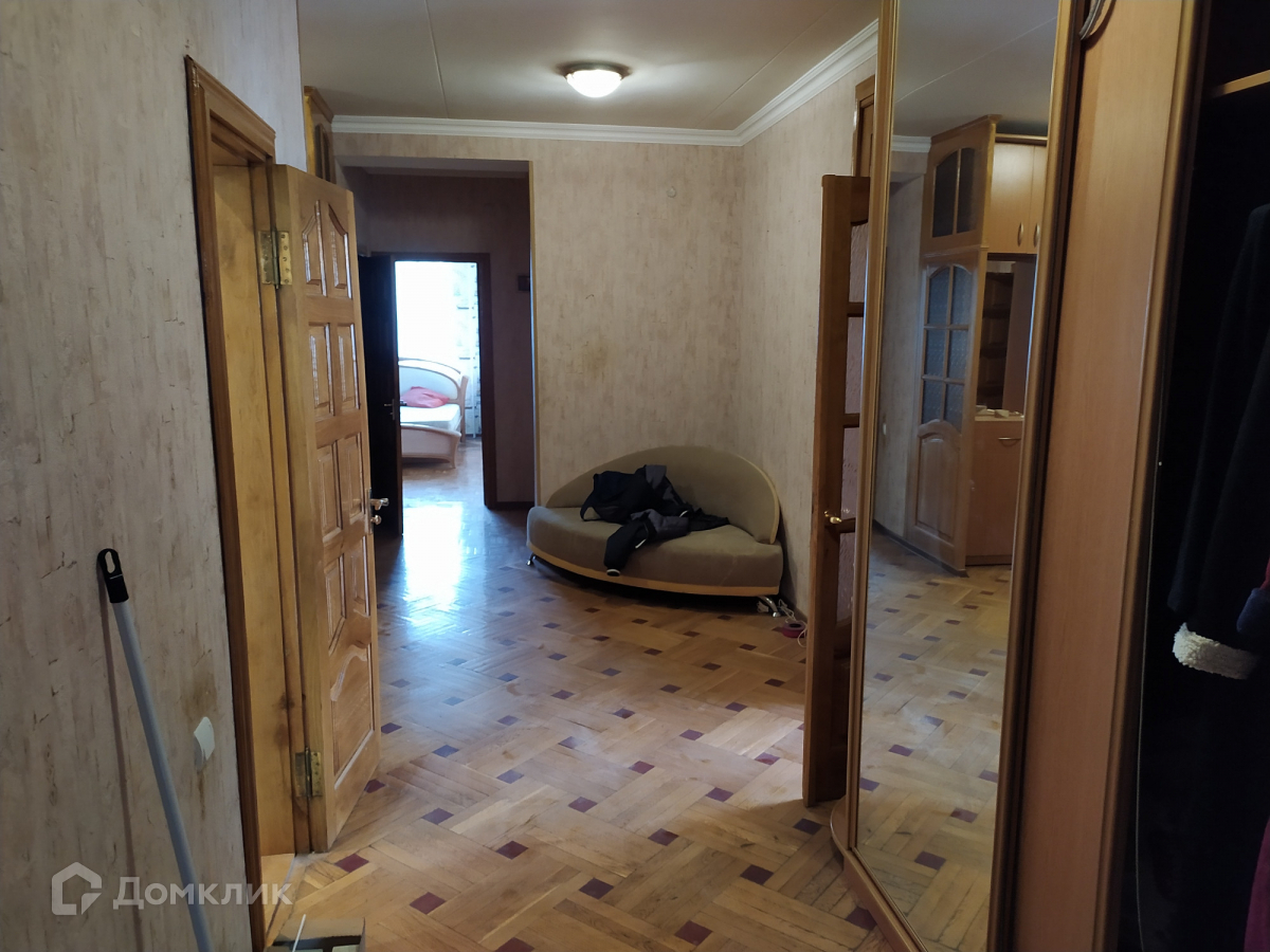 Продаётся 5 - комнатная квартира с мебелью и техникой. Два санузла, гардеробная. По всей квартире паркет, окна пластик, дубовые двери. Пять комнат и четыре огромные застеклённые лоджии - 46.2м. Высота потолков - 2.75м. Прихожая -27.1  м с двумя большими шкафами. Кухня- 15 м стоит газовая колонка. На этаже 2 квартиры. Дом одно подъездный. Во дворе детская площадка. В шаговой доступности школа 15-14, 2 детских сада, магазины, транспорт, рынок. Торг. Документы РФ.