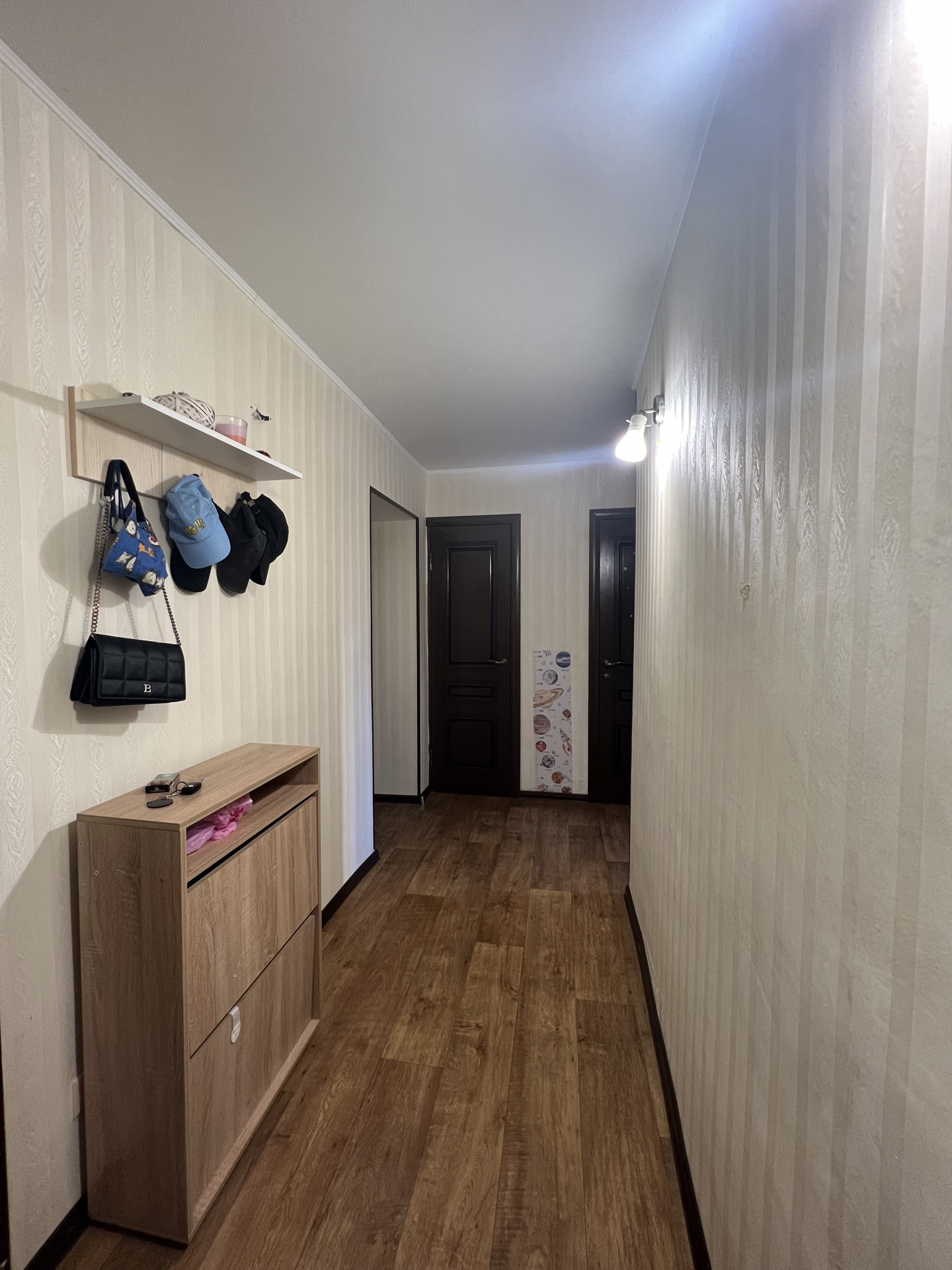 Общей площадью 48 м2, комнаты раздельные, жилая 26 м2 (13,7/12,3м2), кухня 7,8 м2, коридор 6,9 м2, с/у совмещённый, большая лоджия, кладовая.