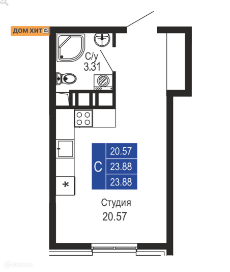 Общая площадь 23.88 м2