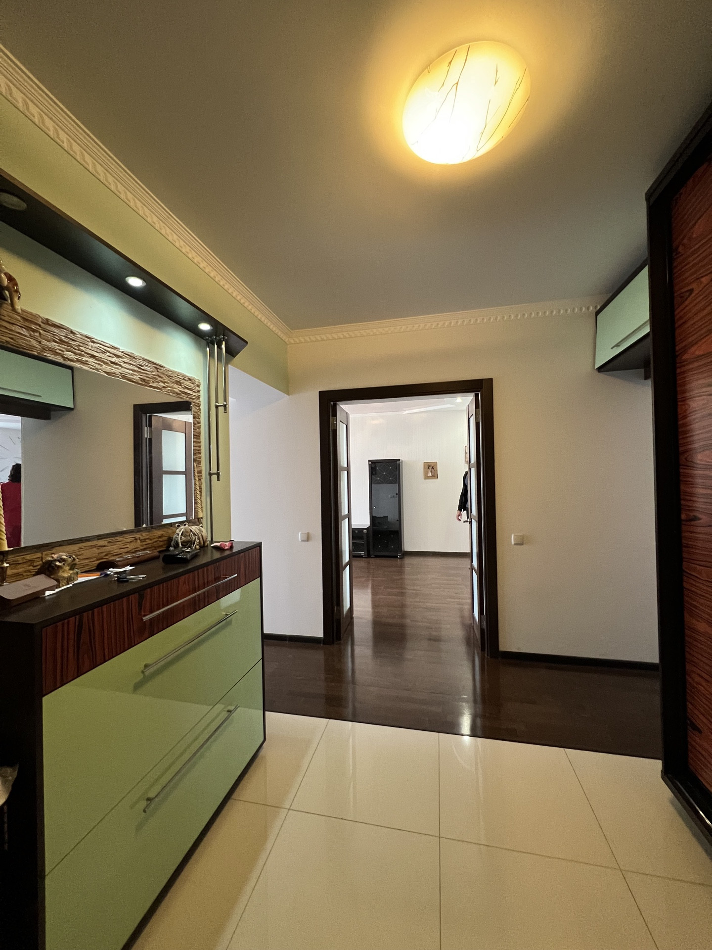 Состояние - сделан качественный ремонт, полы – паркетная доска и испанская плитка, в комнатах натяжные потолки, с/у – сантехника хром, немецкого качества, кухня – по индивидуальному проекту, Австрийская.