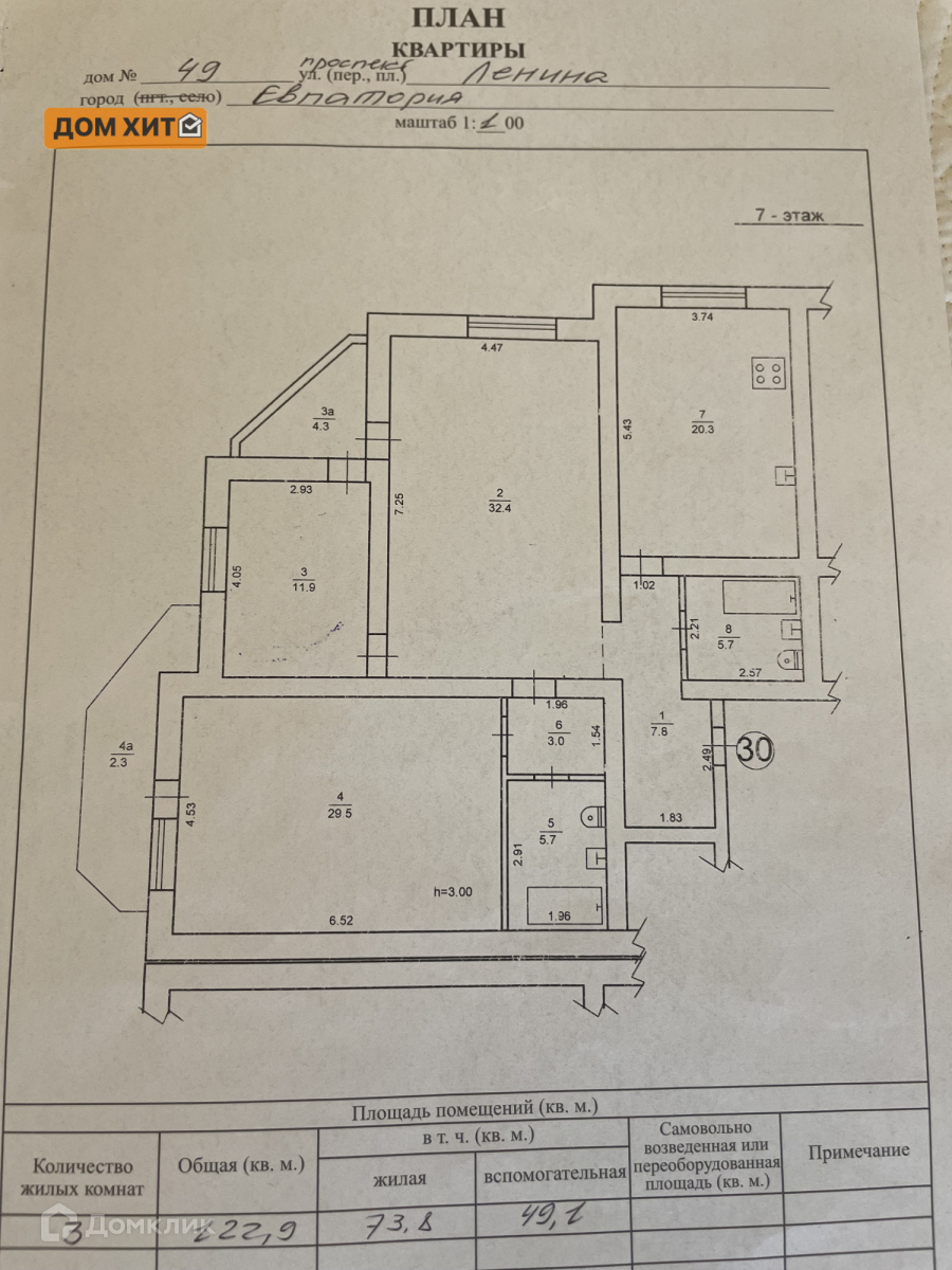 5-комнатная квартира, 245.8 м2, этаж 7 / 8, на продажу в Евпатории, проспект Ленина, 49