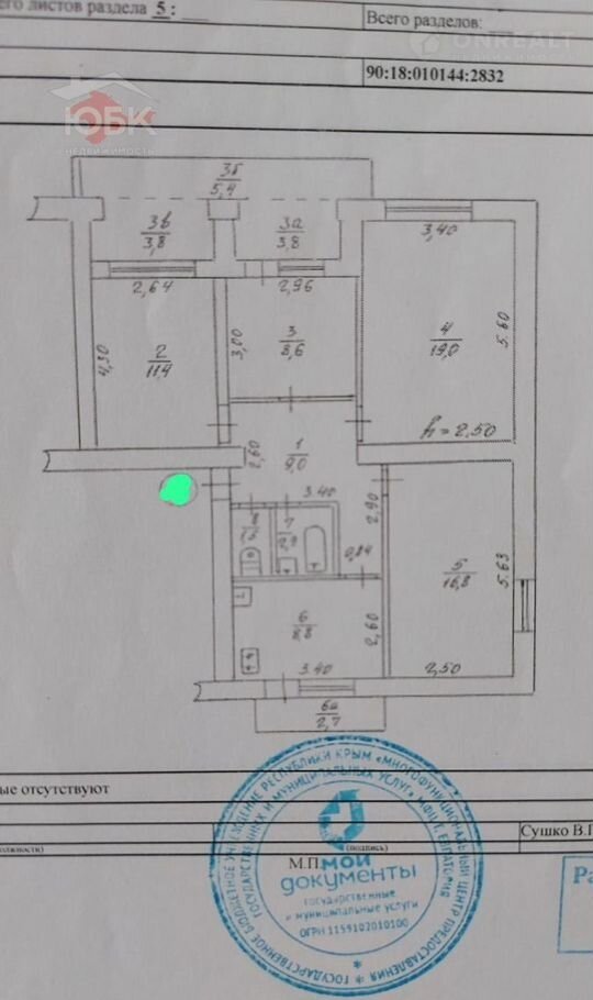 4-комнатная квартира, 100 м2, этаж 1 / 6, на продажу в Евпатории, улица 9 Мая, 110