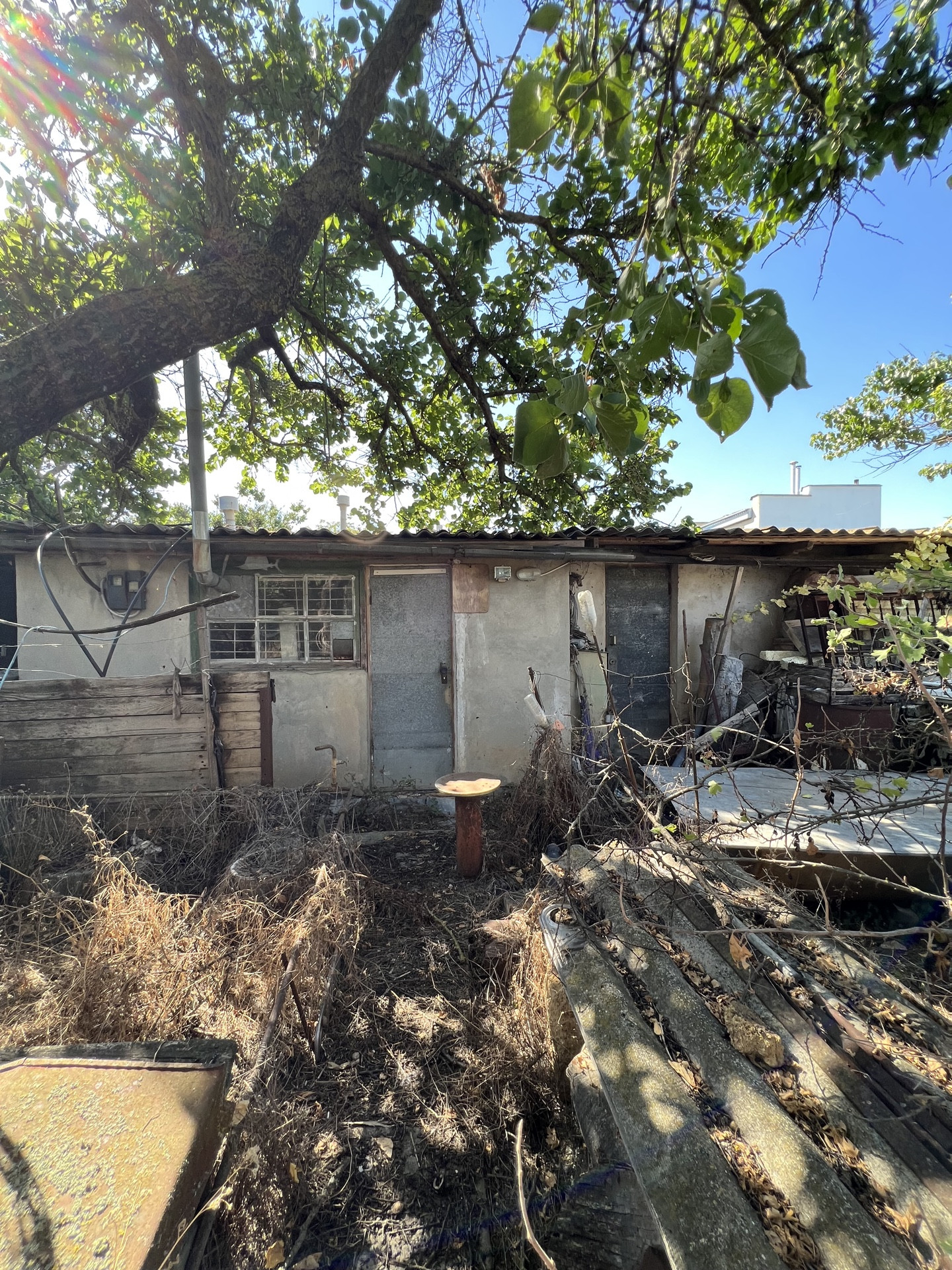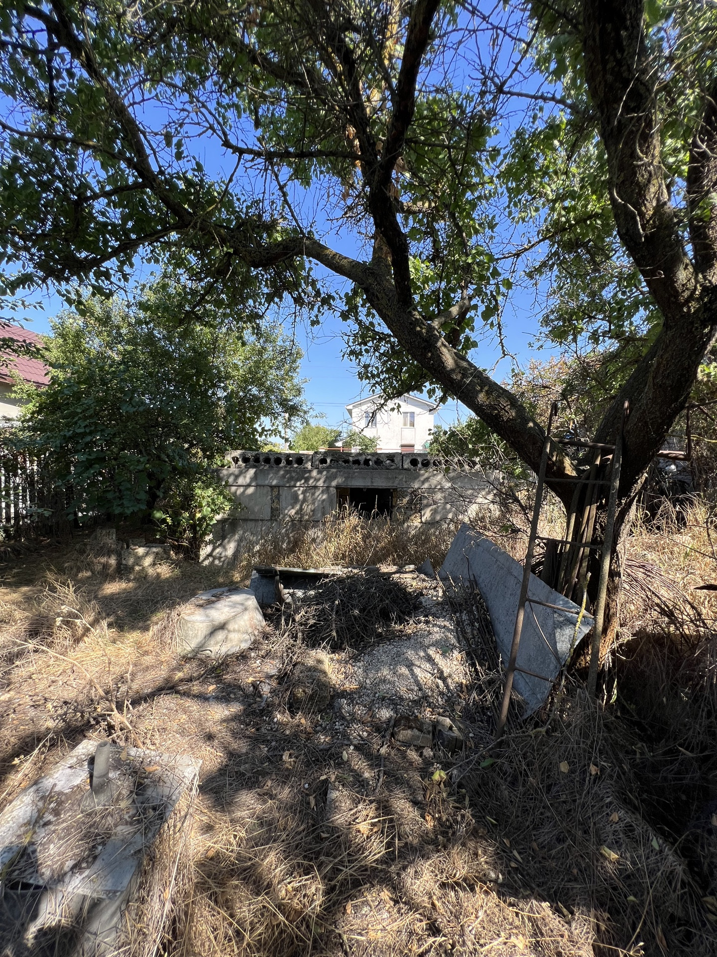 На территории участка есть недострой 9,3х7,3 (цoкoльный этaж), летняя кухня, душ, хоз. постройка, вагончик.