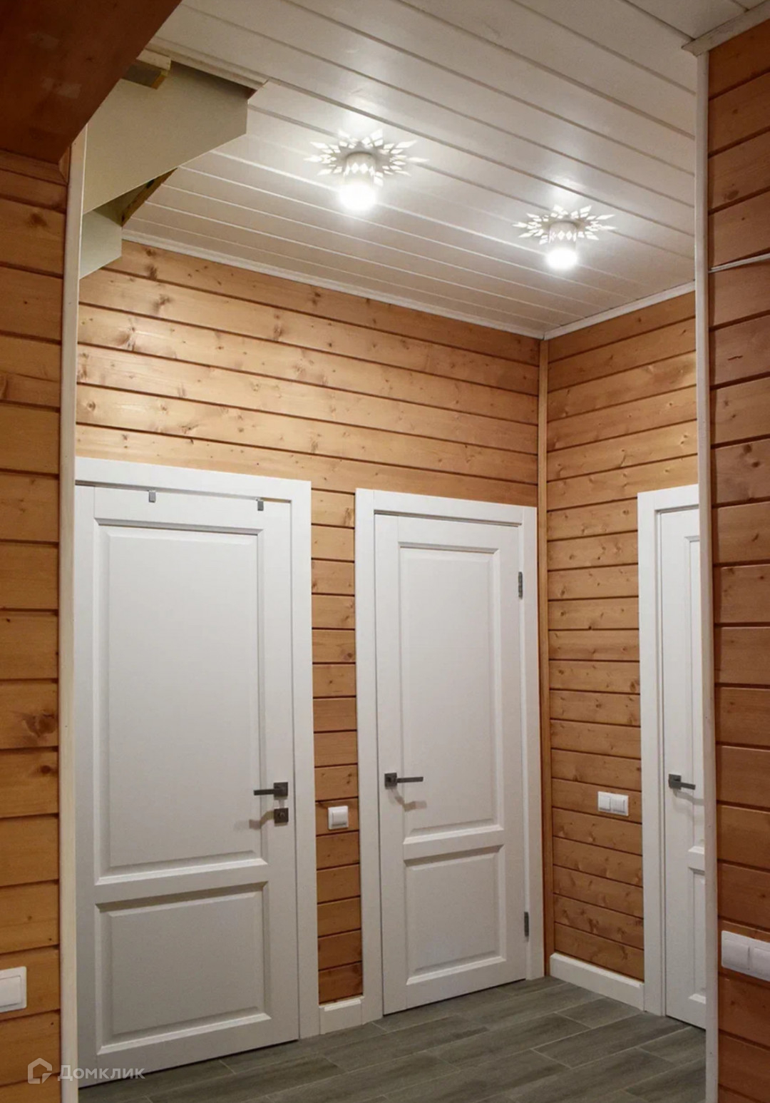 Смонтированы натяжные потолки со встроенными светильниками, установлены розетки, включатели и переключатели.