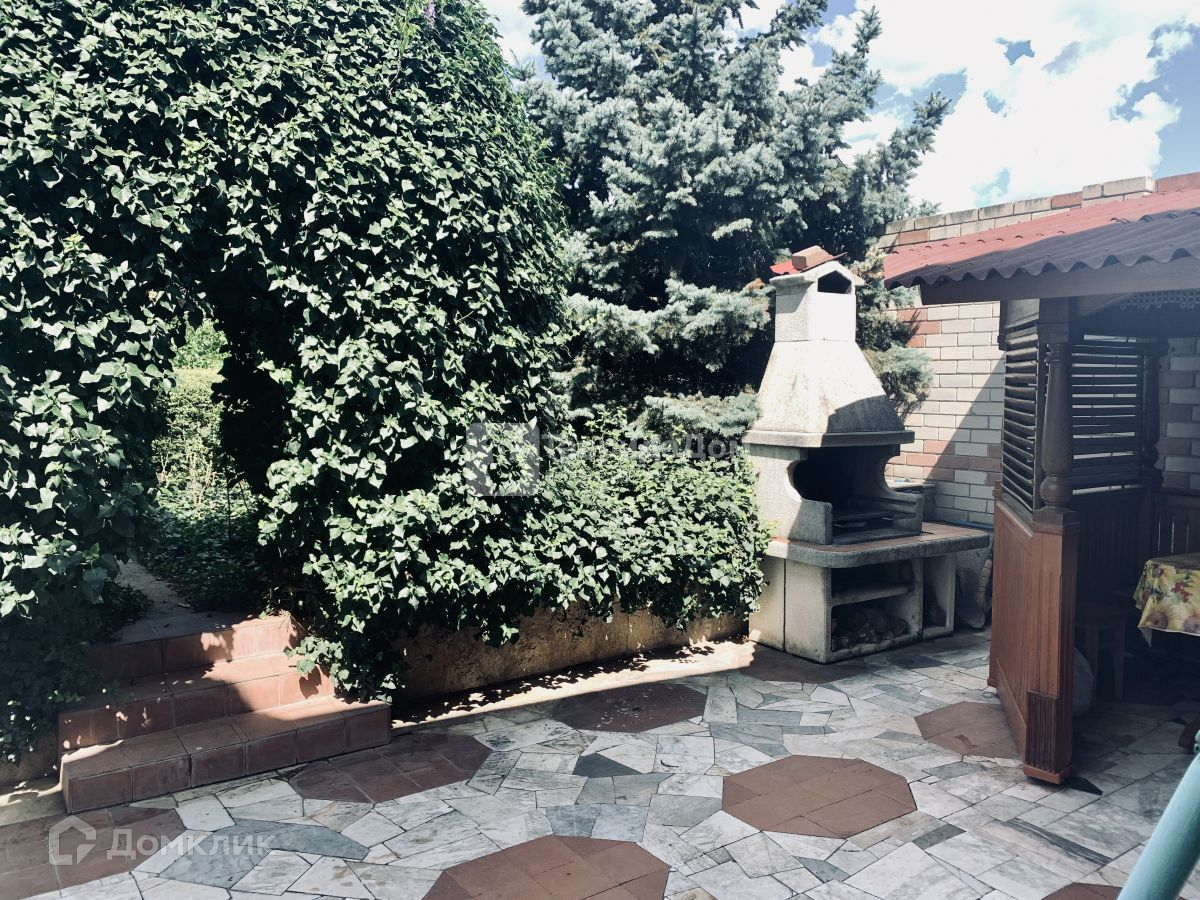 Участок правильной прямоугольной формы, много зелени, плодовых деревьев, виноград. За домом большая зона отдыха с беседкой и барбекю. Летняя кухня, сауна и гараж на 1 автомобиль. Весь периметр домовладения огорожен высоким кирпичным забором.