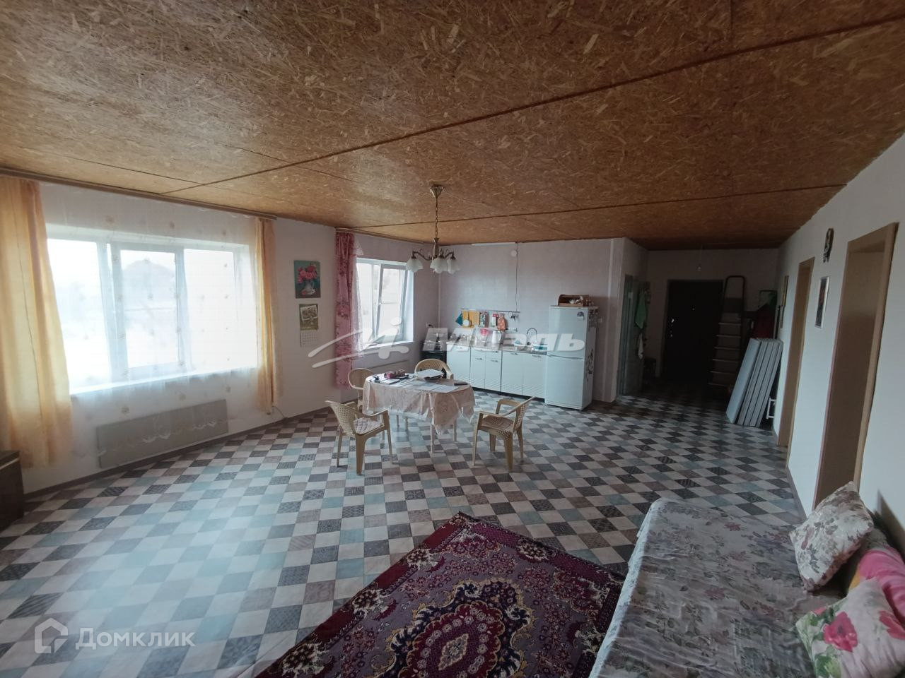 Общая площадь 100 кв. м., жилая 39,8 кв. м., кухня 23 кв. м.