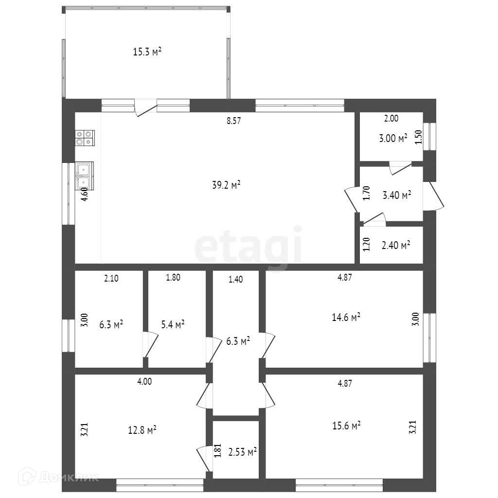 Одноэтажный дом площадью 121 кв.м., расположен на участке площадью 6 соток прямоугольной формы. Дом предлагается с предчистовой отделкой.