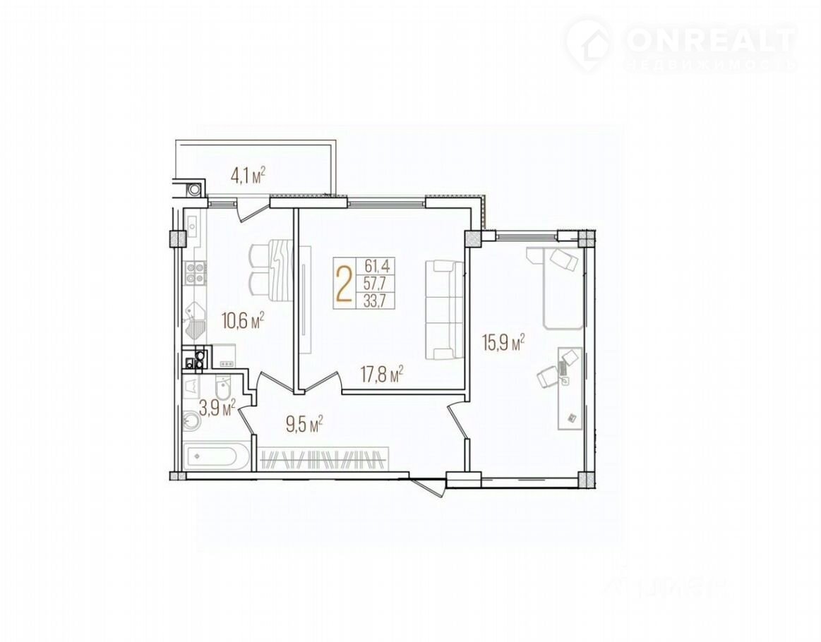 Общая площадь 61.4 м2