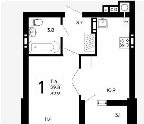 Общая площадь 32.9 м2