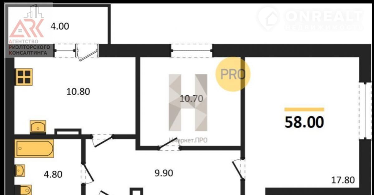 Общая площадь 58 м2